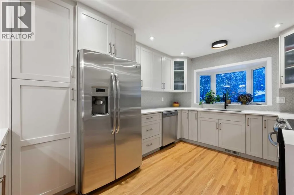 this location is exceptional for families seeking both daily convenience & a strong sense of community. This property has arguably some of the nicest curb appeal & landscaping you’ll find in Lake Bonavista. The vaulted ceiling allows for massive windows at the front which bring in loads of natural light. Professional landscaping transformed the front & backyard with a poured concrete front path & pad, rear deck & stairs, sod, decorative rock work, edging, mulch & stepping stones. The low maintenance perennial garden with more than 150 specimens adds beauty, colour & character throughout the seasons. Inside, the home has been thoughtfully transformed with a major renovation creating a bright, open floor plan with timeless finishes & highly functional spaces throughout. The open main level also has nicely defined spaces which creates a connected, modern layout. The kitchen was beautifully updated with new cabinetry, countertops, a peninsula with waterfall edges & an imported Italian porcelain tile backsplash, resulting in a space that feels elevated, stylish & highly practical for everyday living or entertaining. The quality of the renovation is immediately apparent throughout the home. The main level features newer hardwood floors & baseboards, while the upper level hardwood was refinished. Additional improvements include Lux windows, Lux front & back doors, updated interior doors including solid wood doors upstairs, designer light fixtures, LED pot lights, ceiling fans, updated hardware, fresh interior paint & Hunter Douglas roller blinds, including blackout blinds on the east facing side of the home. Three full bathrooms have been extensively updated with new cabinetry, sinks, mirrors, light fixtures, glass shower enclosures, updated faucets & improved plumbing. The lower level adds even more versatility with a kitchenette area, custom built-ins, coat lockers & shelving, making it ideal for growing families or anyone wanting extra functional space. The 1st lower level has 2 additional bedrooms – one being currently used as a recreation area/TV room. Beyond the interior upgrades, the exterior has also seen meaningful investment. In 2021, the cedar siding was painted, gutters were updated, fascia on the garage was replaced & exterior lighting was improved. Additional recent improvements include a new fence & gates in 2025. Lake Bonavista is Calgary’s premier lake community due to its maturity, schools, recreation, shopping & proud residents. This is a rare opportunity to own a substantially renovated home in a prime location, tucked away on a quiet cul-de-sac & close to some of the community’s most valued amenities. (id:62650)