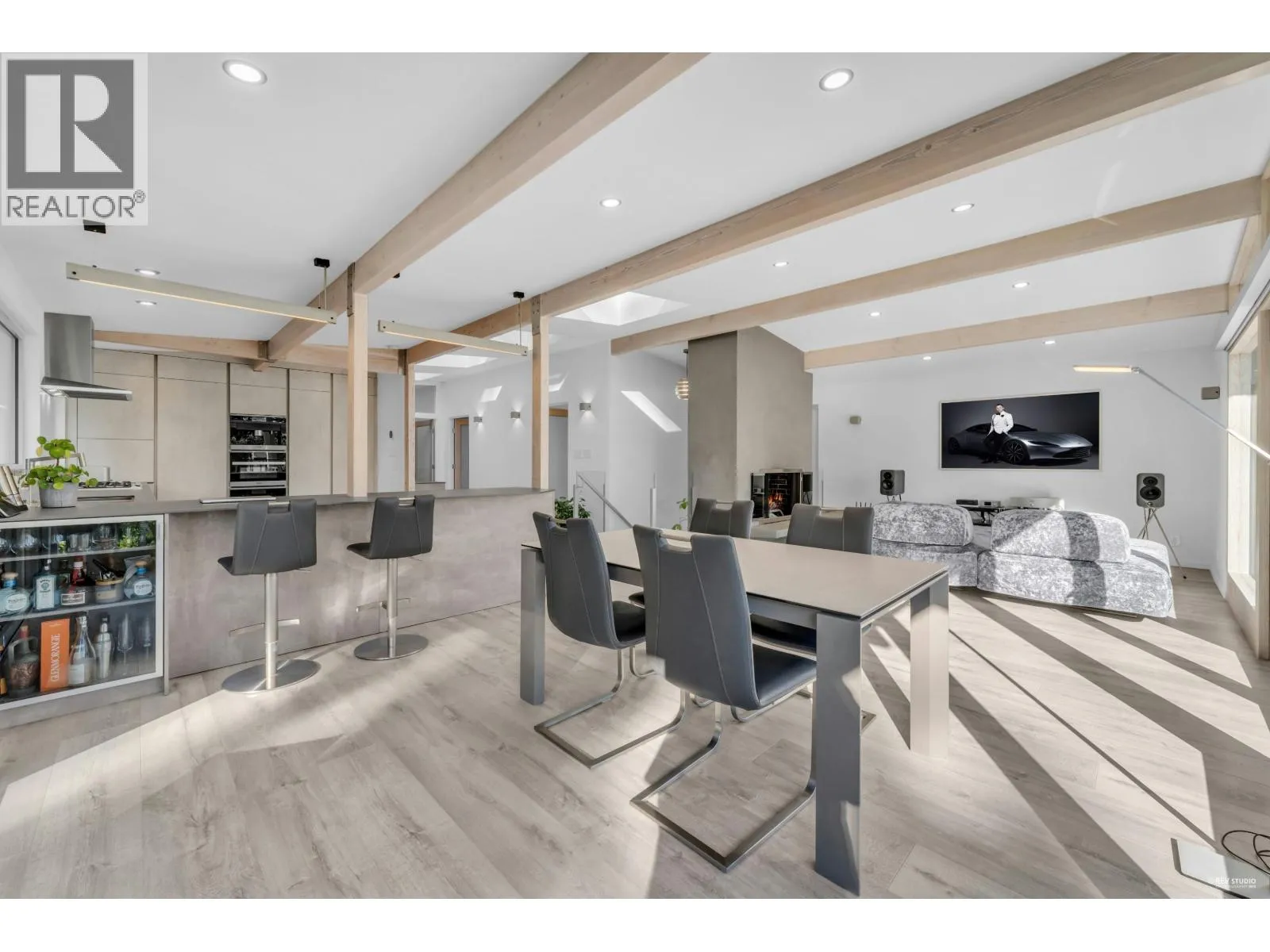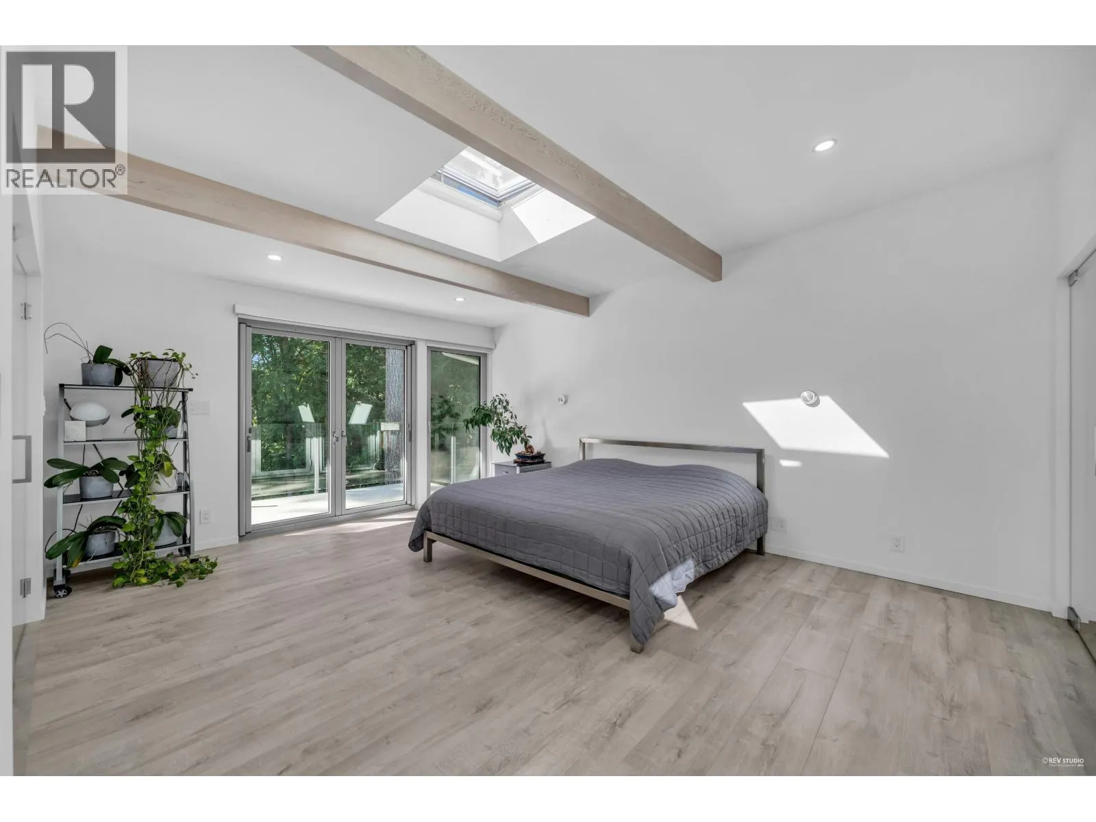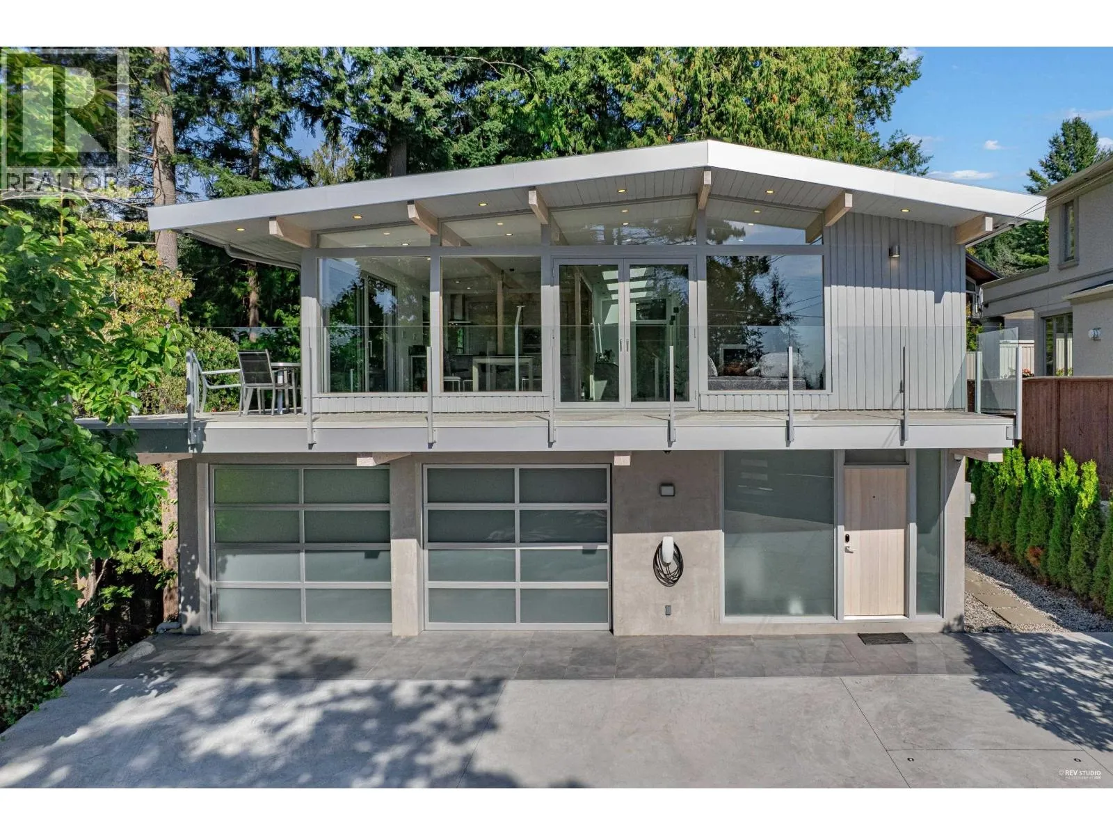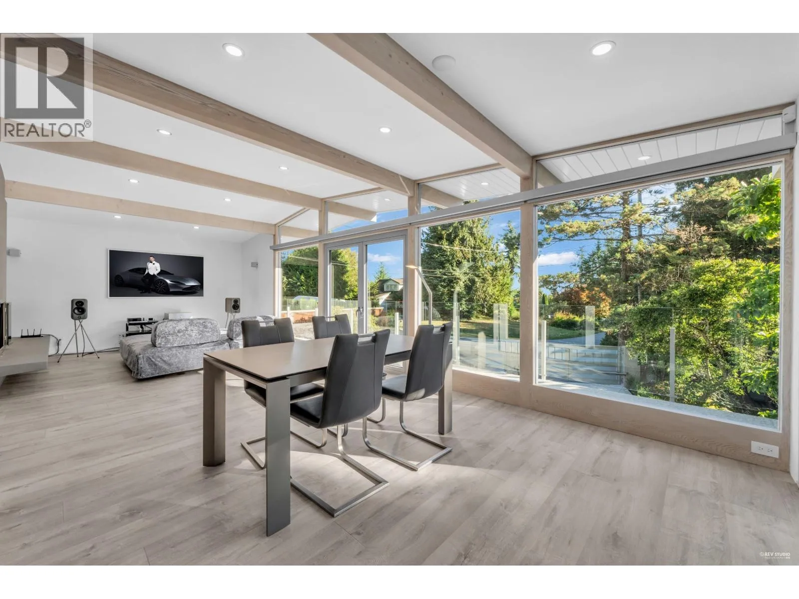 This striking West Coast modern residence perfectly combines architectural elegance with natural serenity and view of the ocean. Inside, the open-concept layout is bright and airy. Soaring ceilings and exposed beams add character and volume. Floor-to-ceiling windows invite natural light and frame lush greenery. The uncluttered living and dining areas extend seamlessly to a sunlit balcony, perfect for entertaining or