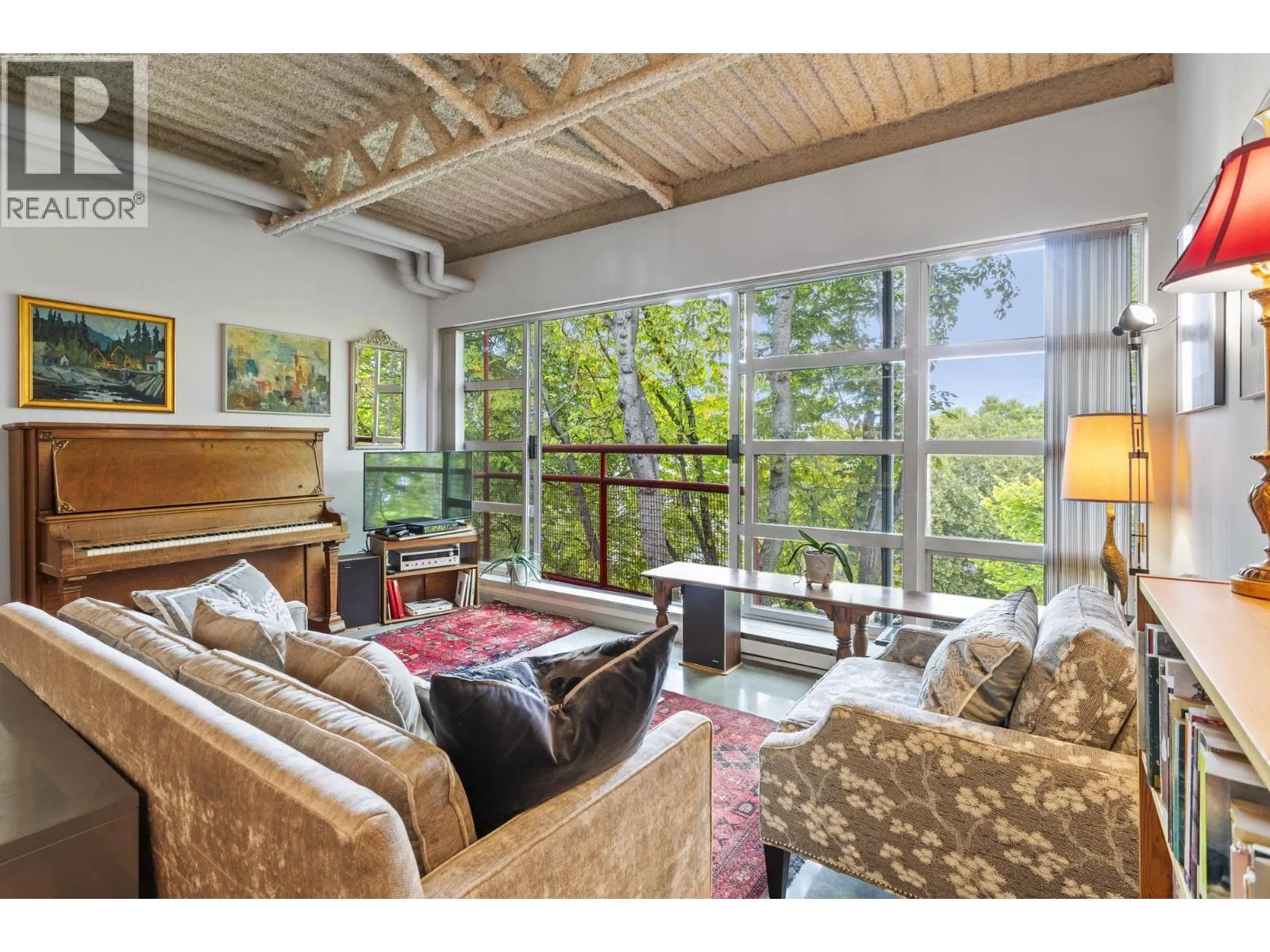SUB -PENTHOUSE AT MAINSPACE WITH NO ONE ABOVE YOU !!!!, rare 696 square ft loft style live/work gem in the heart of Mount Pleasant. This open concept unit features soaring 10´+ ceilings, HUGE SKYLIGHT, plus full height windows to PRIVATE CITY & MTN VIEWS, flexible layout perfect for creatives, professionals or investors. POLISHED CONCRETE FLOORS IN LIVING AREA,