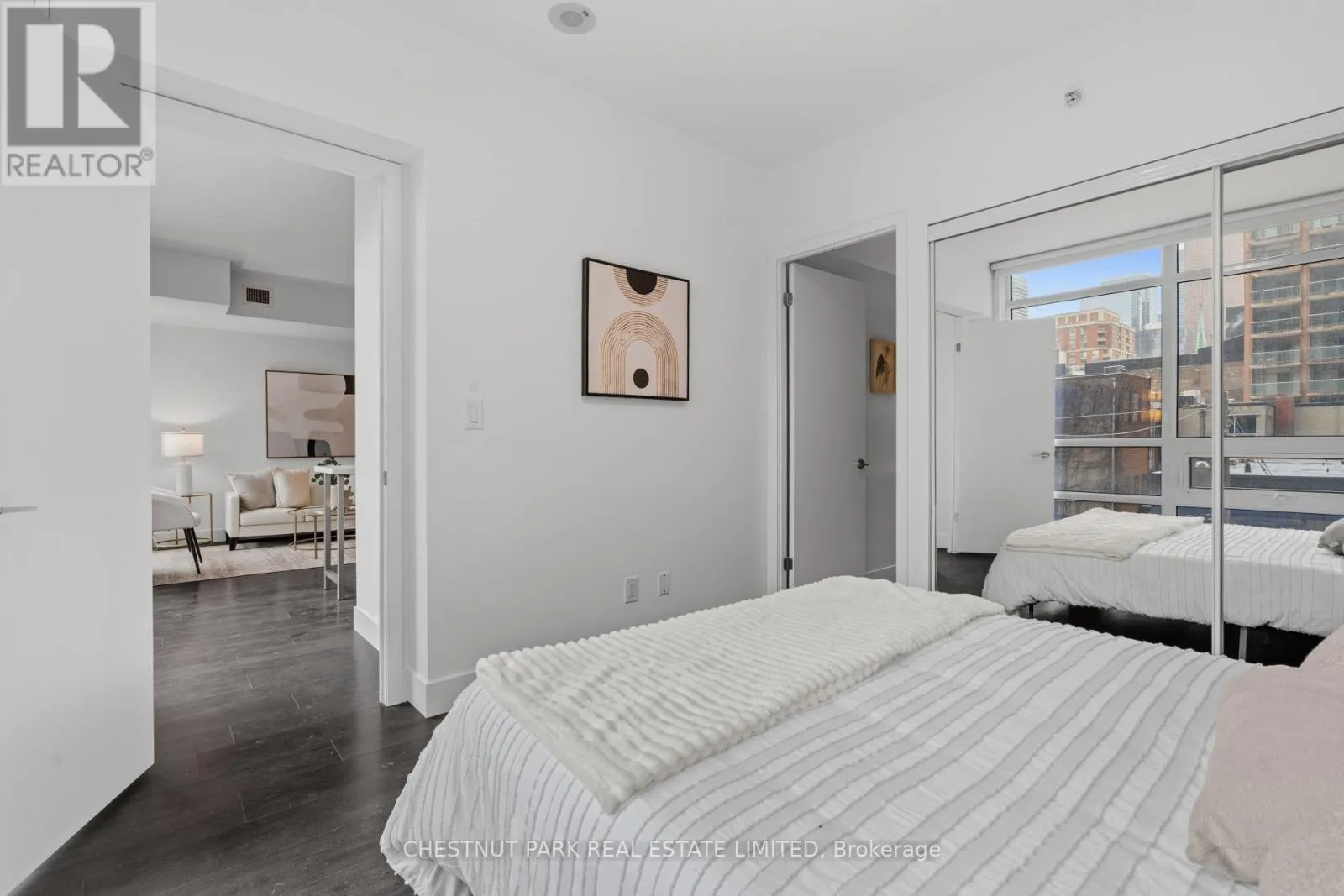 Welcome to this spacious and intelligently designed two-bedroom plus den suite in the heart of King East-Toronto’s renowned furniture and design district. Offering approximately 950 sq. ft. of interior living space, this residence blends modern finishes with a highly functional layout, ideal for end-users and investors alike. Smart, Functional Layout The well-appointed floor plan features a bright open-concept living and