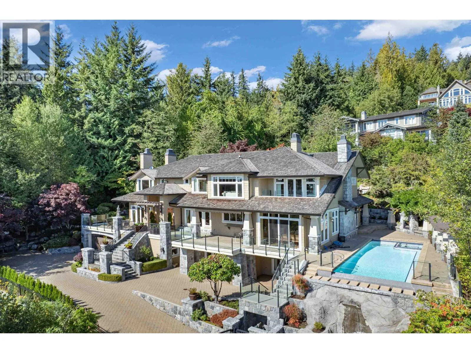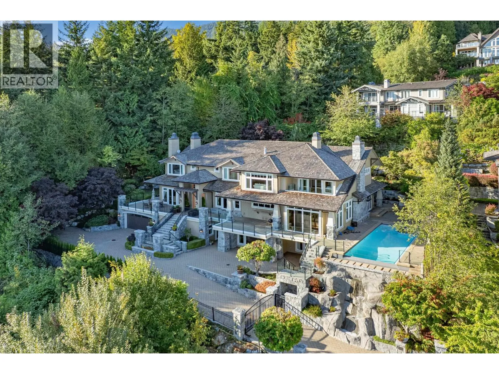 Perched high in the prestigious Whitby Estates, this meticulously maintained luxury residence showcases timeless elegance and unobstructed panoramic views of the city skyline, ocean and Stanley Park. Situated on an expansive 20,000 sq.ft. landscaped lot, the home offers over 9,500 sq.ft. of refined living space with custom design and flawless craftsmanship by BPP. The grand interior features a private 3-level
