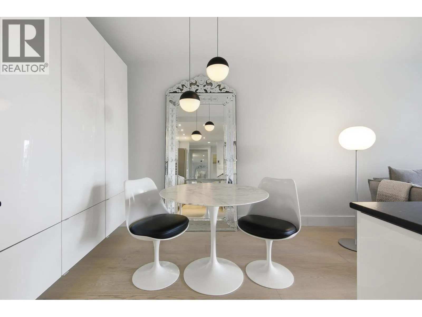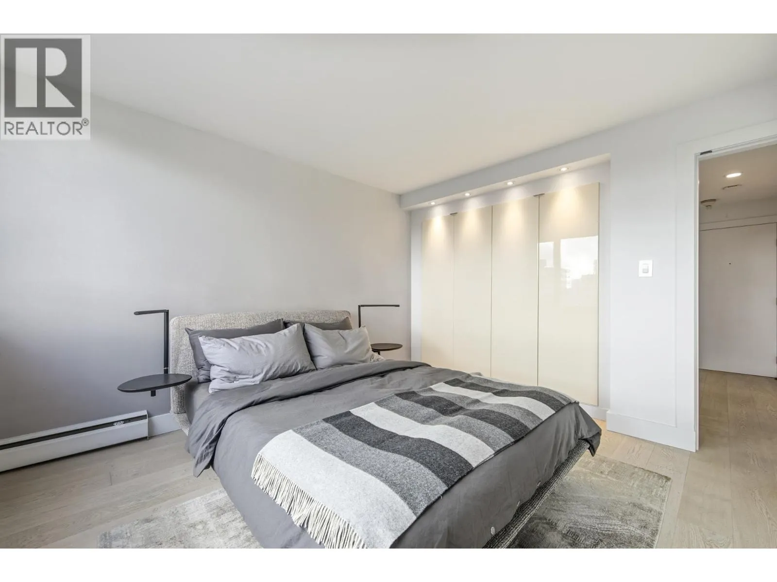 Bright + airy 1-bedroom + solarium on the 18th floor of sought-after Stratford Place in the West End. Thoughtfully designed + renovated in 2022 by Peter Wilds Design with exceptional attention to detail. Engineered white oak flooring throughout, custom-designed interiors, Duravit fixtures + Flos lighting, to mention a few details. Enjoy mountain + peekaboo ocean views from the solarium. Beautiful