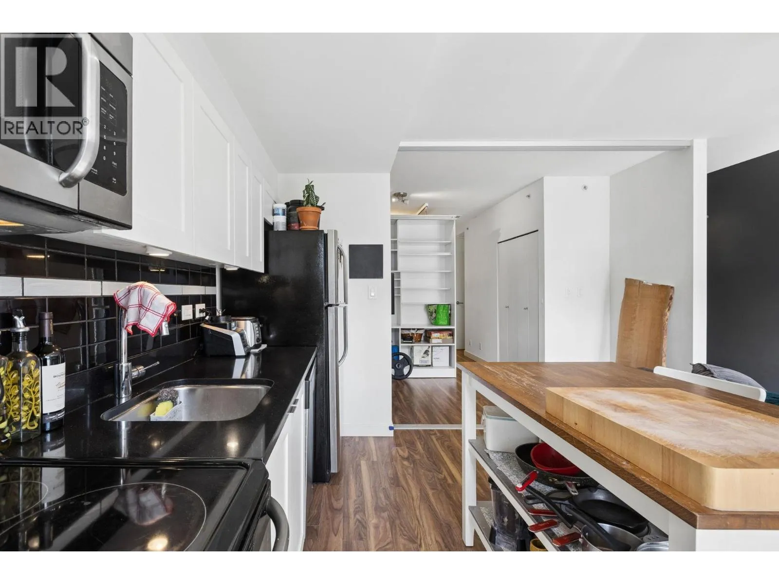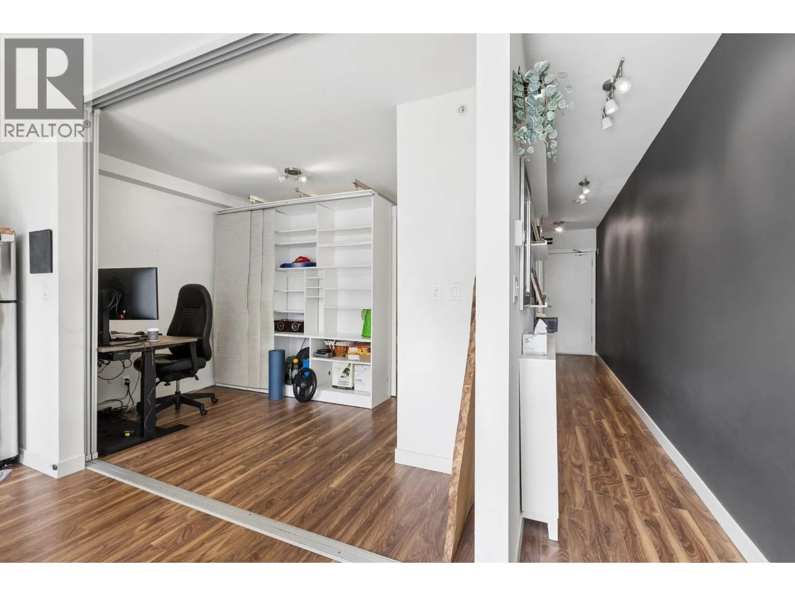 Perched on the upper floor of the boutique OnQue building, this bright end unit offers the kind of living that feels effortless from the moment you walk in. Soaring 8’8″ ceilings lift the space, a south-facing patio invites the afternoon sun, & a moveable storage divider makes the floorplan entirely your own. Position your bedroom toward the front, the back,