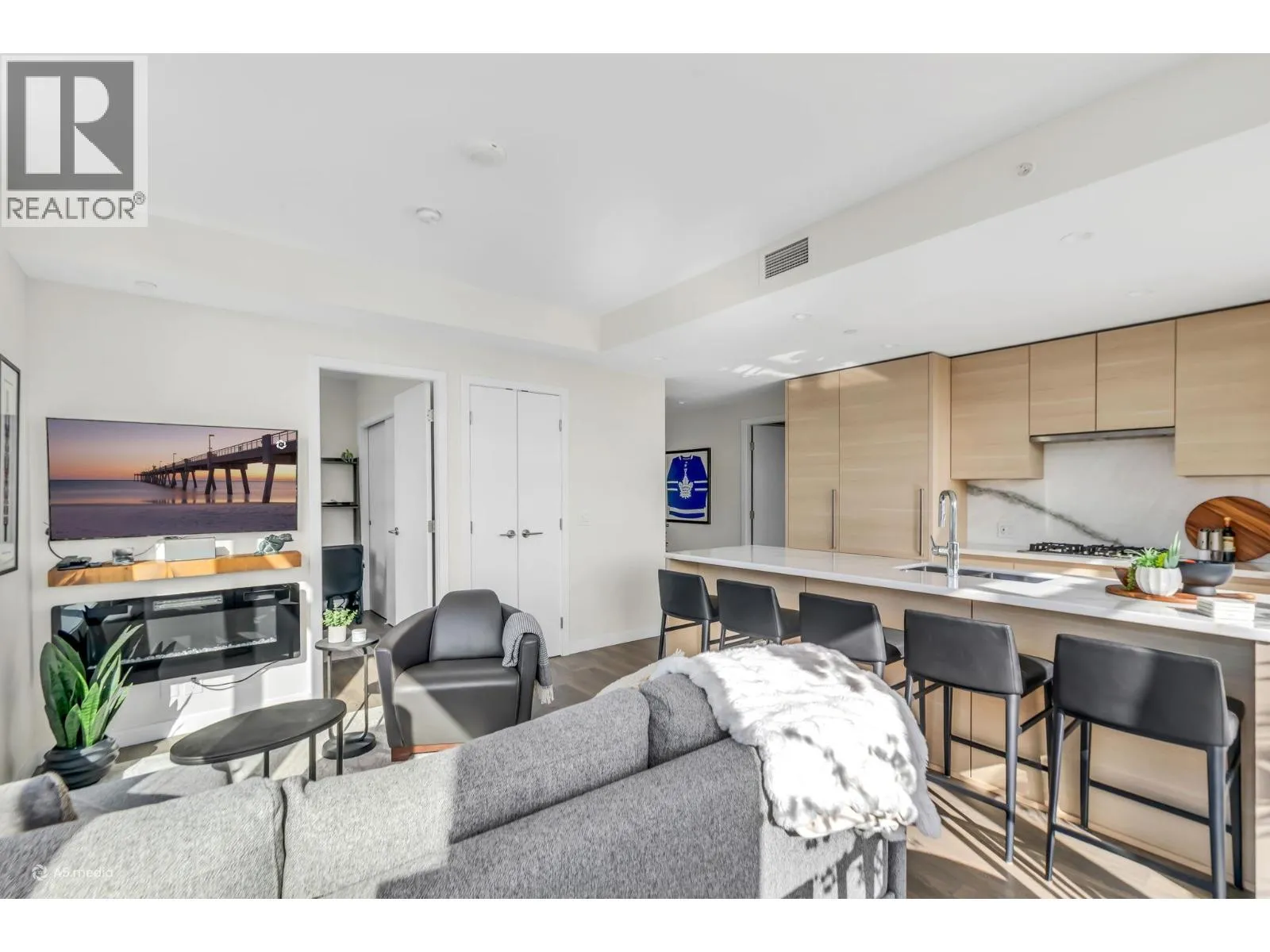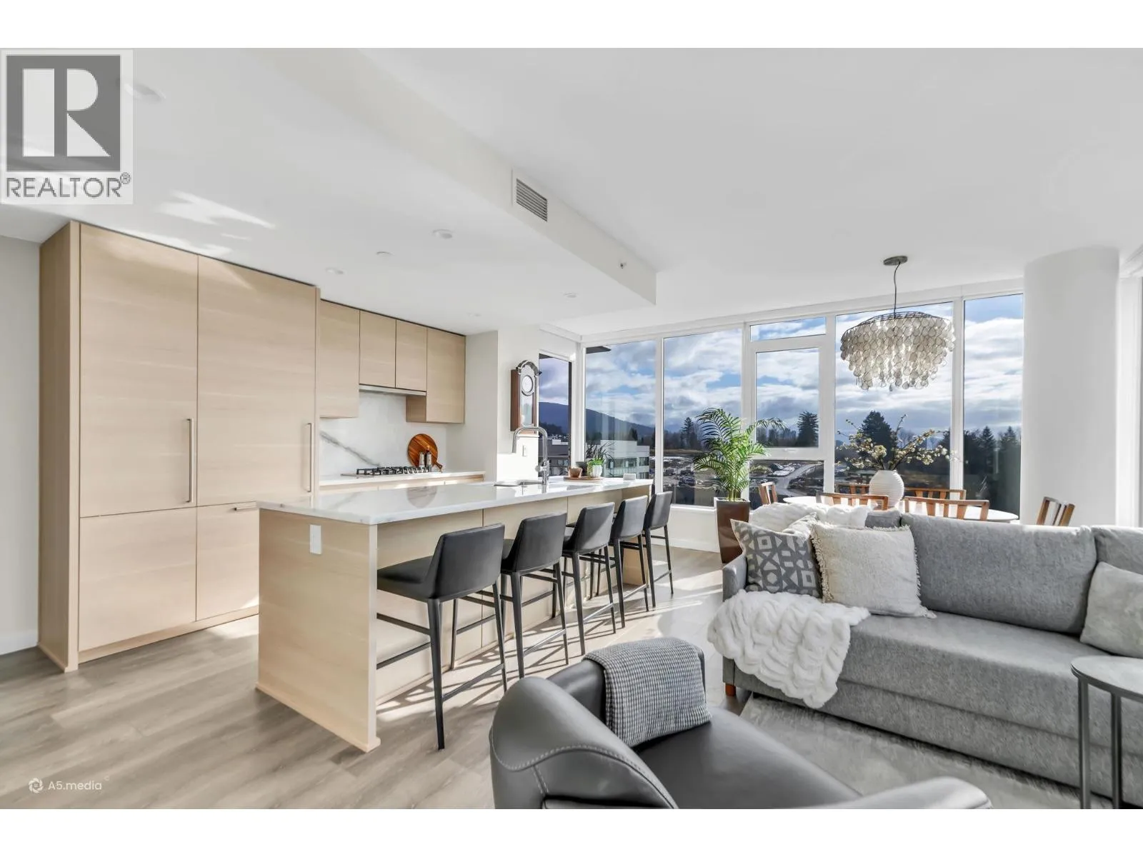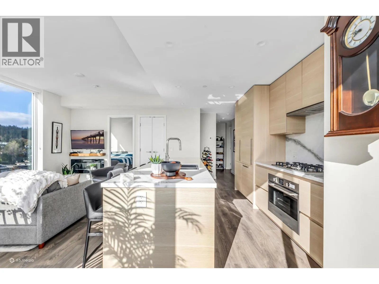 Welcome to The Grande in Suter Brook Village! This East-facing 2 bed 2 bath home offers 2 parking, 2 storage lockers, floor-to-ceiling windows with breathtaking mountain views and a lovely patio for morning sun. The spacious primary features a walk-in closet, a sleek ensuite with a frameless shower and NuHeat flooring. The gourmet kitchen is equipped with European appliances, a