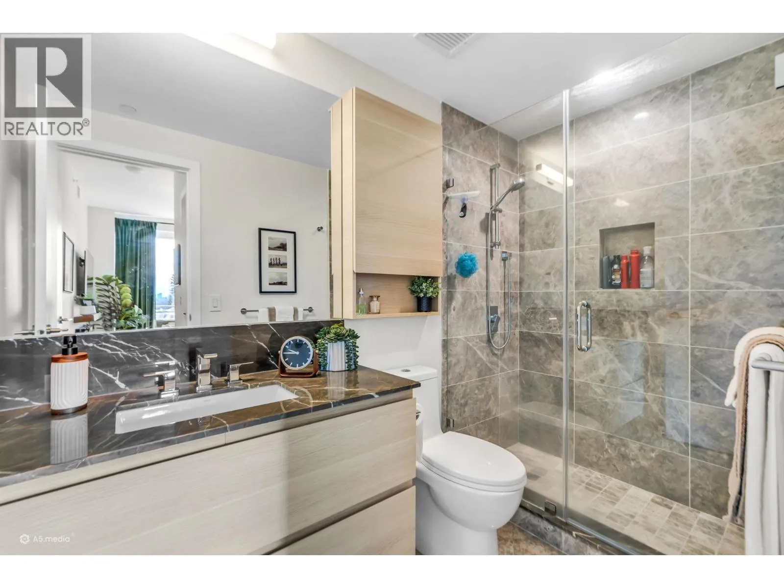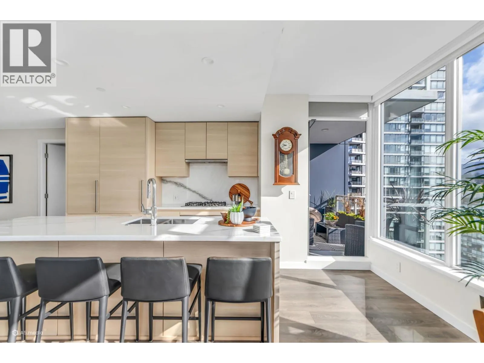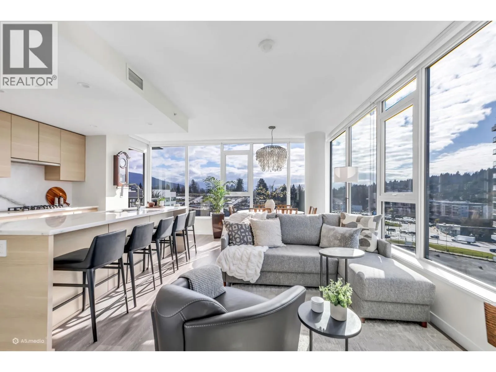 Welcome to The Grande in Suter Brook Village! This East-facing 2 bed 2 bath home offers 2 parking, 2 storage lockers, floor-to-ceiling windows with breathtaking mountain views and a lovely patio for morning sun. The spacious primary features a walk-in closet, a sleek ensuite with a frameless shower and NuHeat flooring. The gourmet kitchen is equipped with European appliances, a