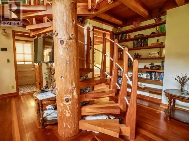 Meticulously crafted, this stunning custom home sits on a quiet and private lot in Savary Shores, where quality workmanship and thoughtful design are evident at every turn. Built with exposed timber frame and beautiful log work throughout, the home also showcases solid fir floors milled directly from trees on the property, complemented by rich oak flooring in the main bedroom.