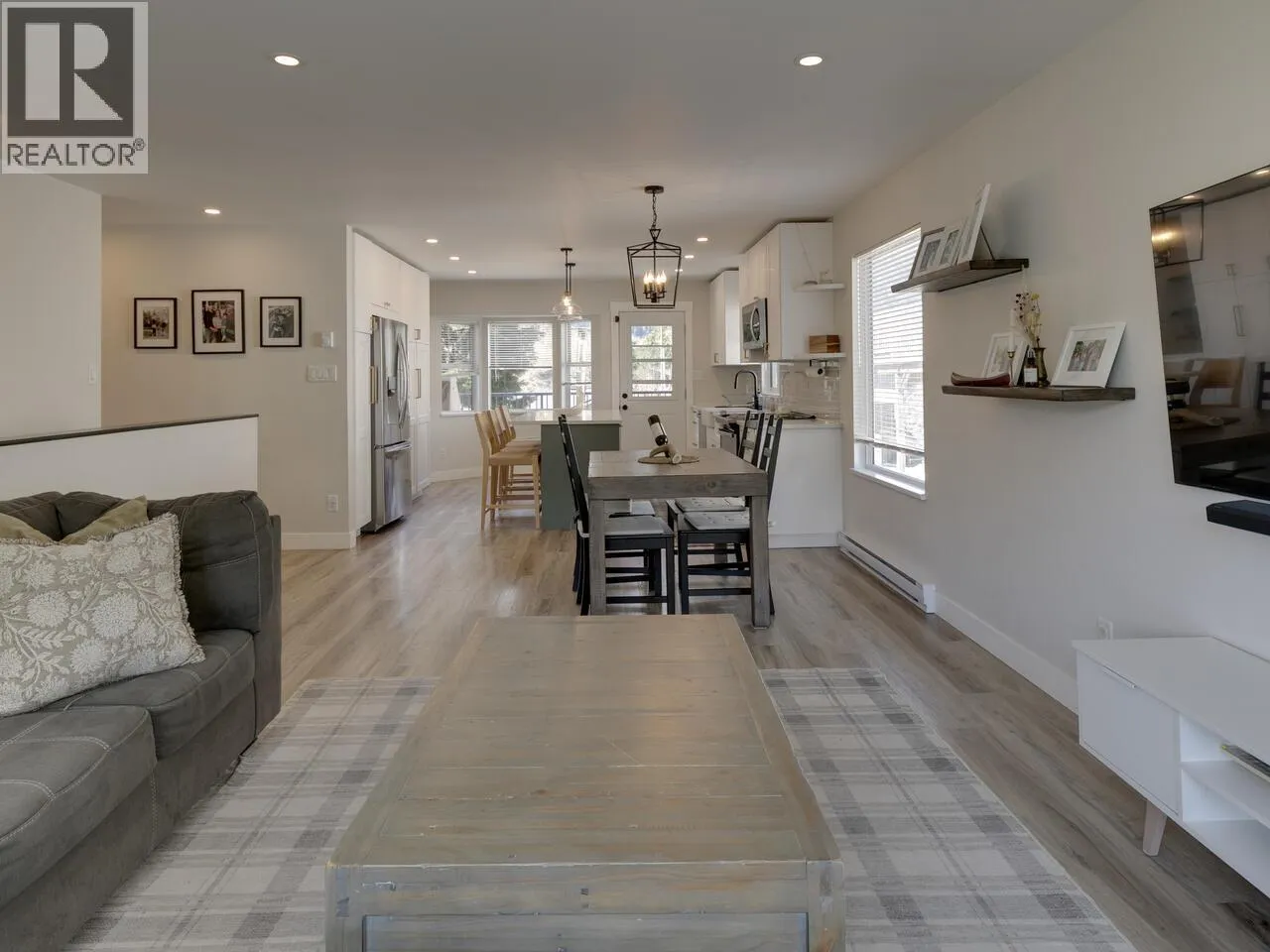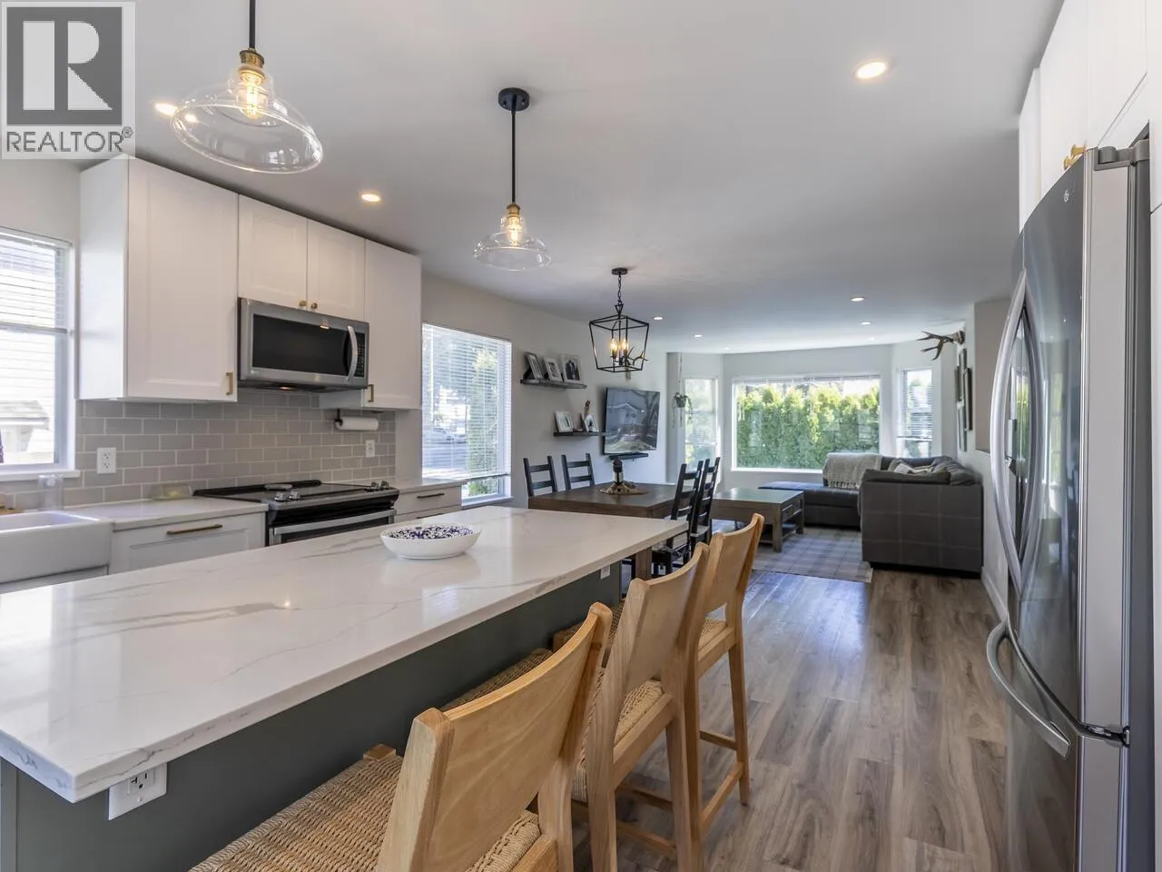 The best Brackendale homes just feel right the moment you walk in. This one opens into a thoughtfully designed custom kitchen built for everyday living and entertaining – quartz island, farmhouse sink, seamlessly open to the living room. Both bathrooms are fully renovated with heated tile floors. The primary bedroom has a walk-in closet and steps out to a private