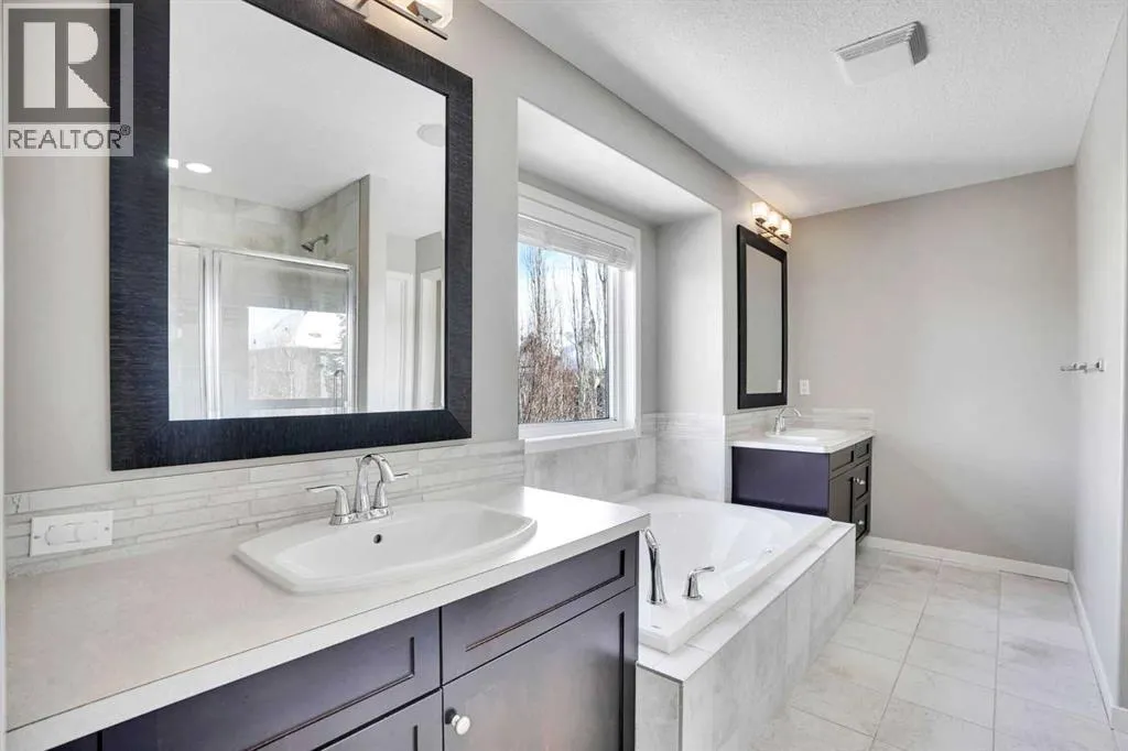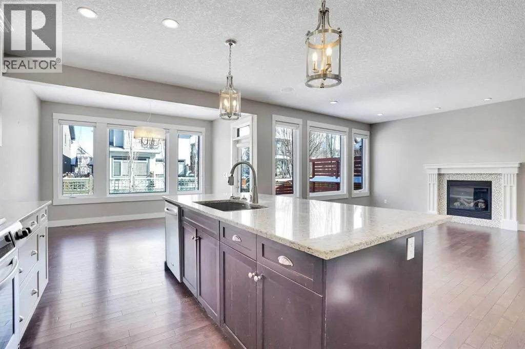 This stunning West Springs home is ideally located in the WALK ZONE for the West Springs School (k-6). The open concept mainfloor features a gorgeous kitchen with gas stove, granite counters, contemporary white cabinets & hardware. A great space for entertaining with an extended dining area, living room with gas fireplace, and separate doors leading to a private office. Upstairs