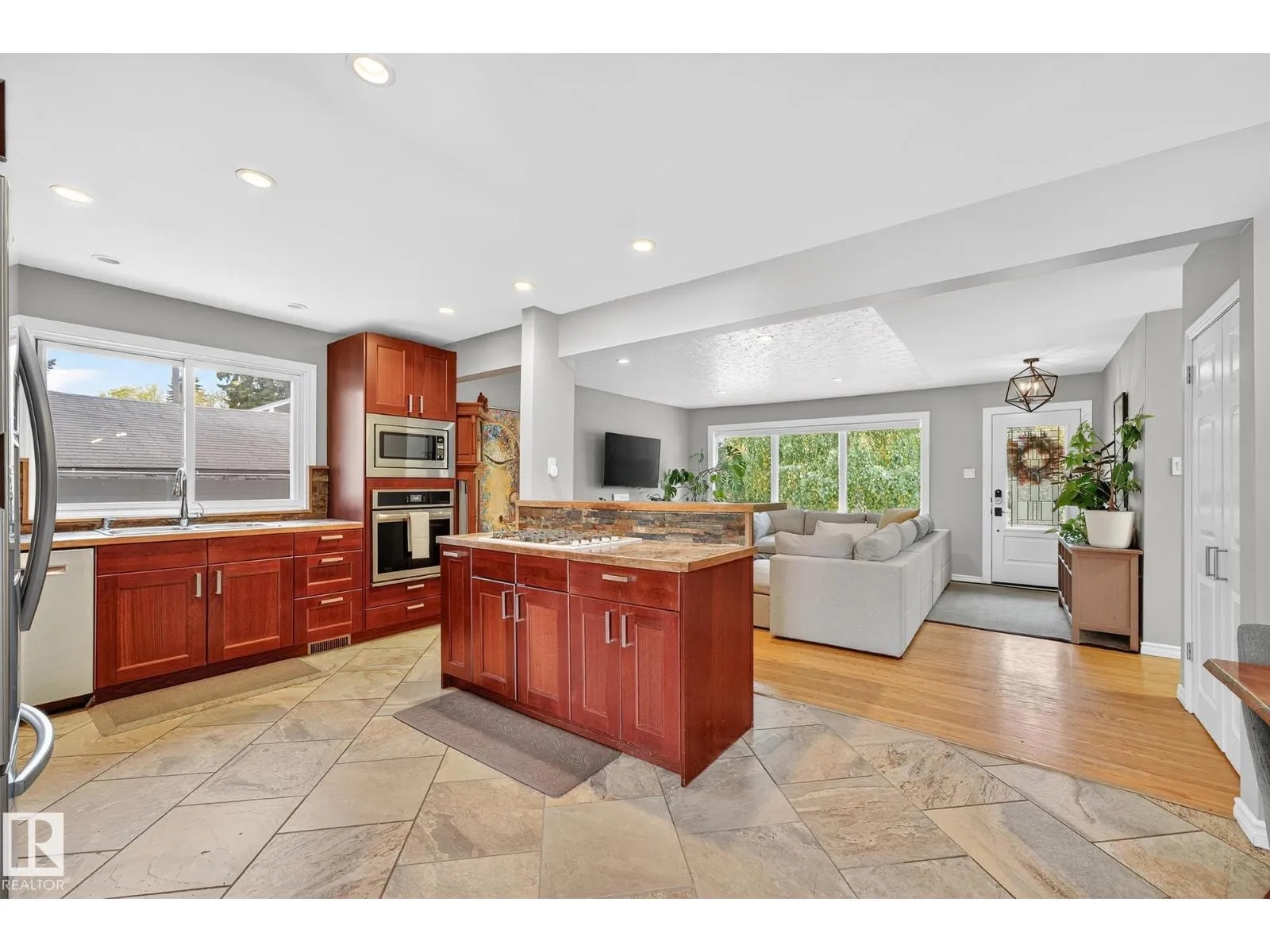 Welcome to this well laid out bungalow featuring a TRIPLE OVERSIZED garage with 10 ft ceilings, offering exceptional space for vehicles, storage, or a workshop. Step inside to a bright front foyer that opens into a spacious living room filled with natural light, flowing seamlessly into the dining area and kitchen, creating an ideal setup for everyday living and entertaining.