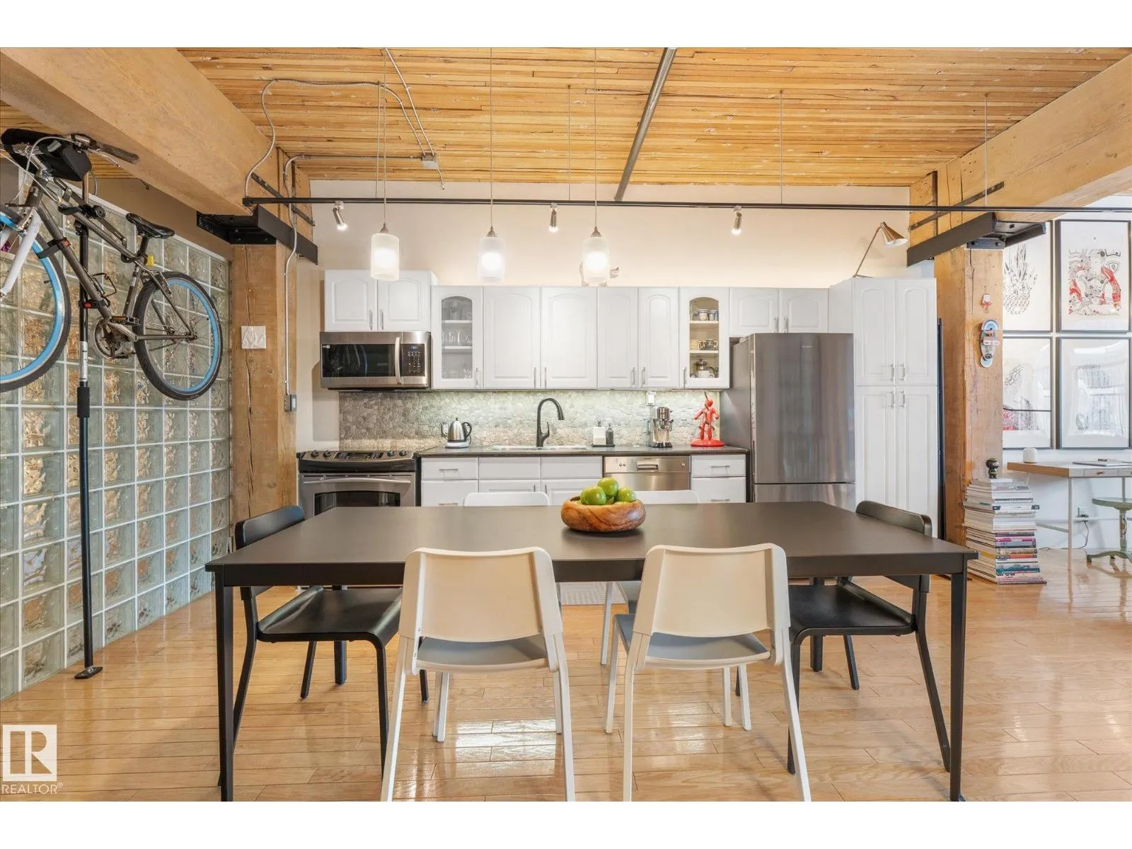 Discover urban living in this stunning hard loft condo conversion in downtown Edmonton, located just off 109 St and 104 Ave. Spanning over 800 square feet, this unique residence features original brick and wood beam accents, creating a unique vibe. Enjoy one of the few private balconies in the building, offering breathtaking views of the downtown skyline and stunning sunrises.