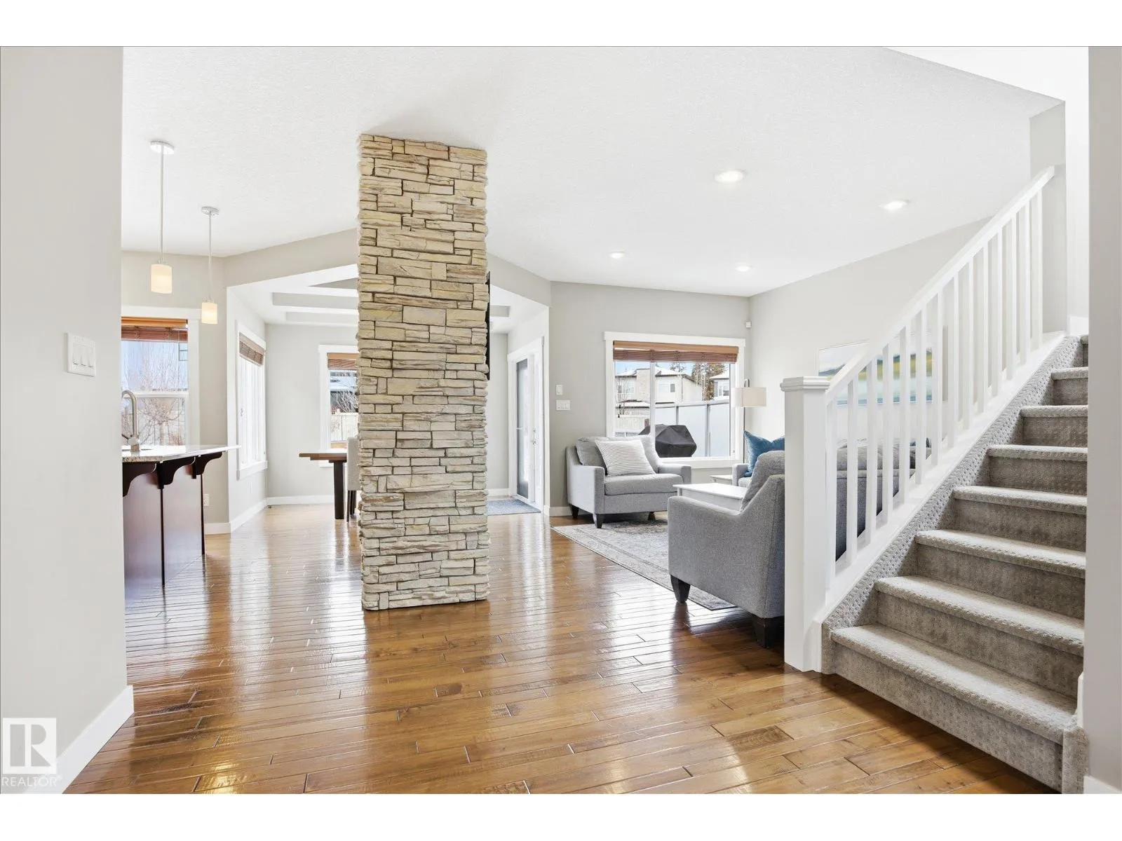 Stunning, well-kept 2-storey home offering comfort and style! The main floor features a bright living room with a beautiful fireplace, a spacious kitchen with ample cabinetry, pantry, and island, plus a dining area with access to the deck and massive backyard. The main floor also includes a den, laundry and a 2-piece bathroom. Upstairs boasts a beautiful bonus room. The