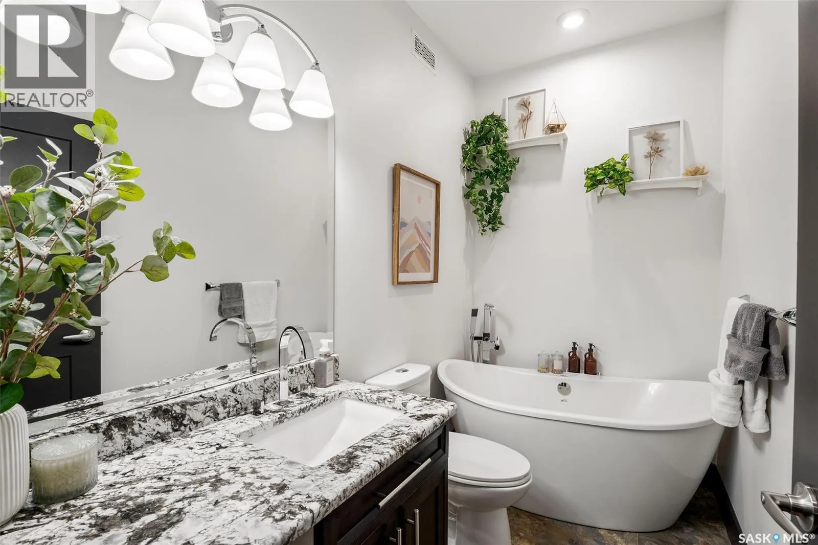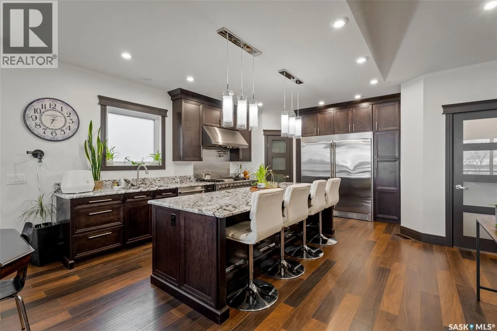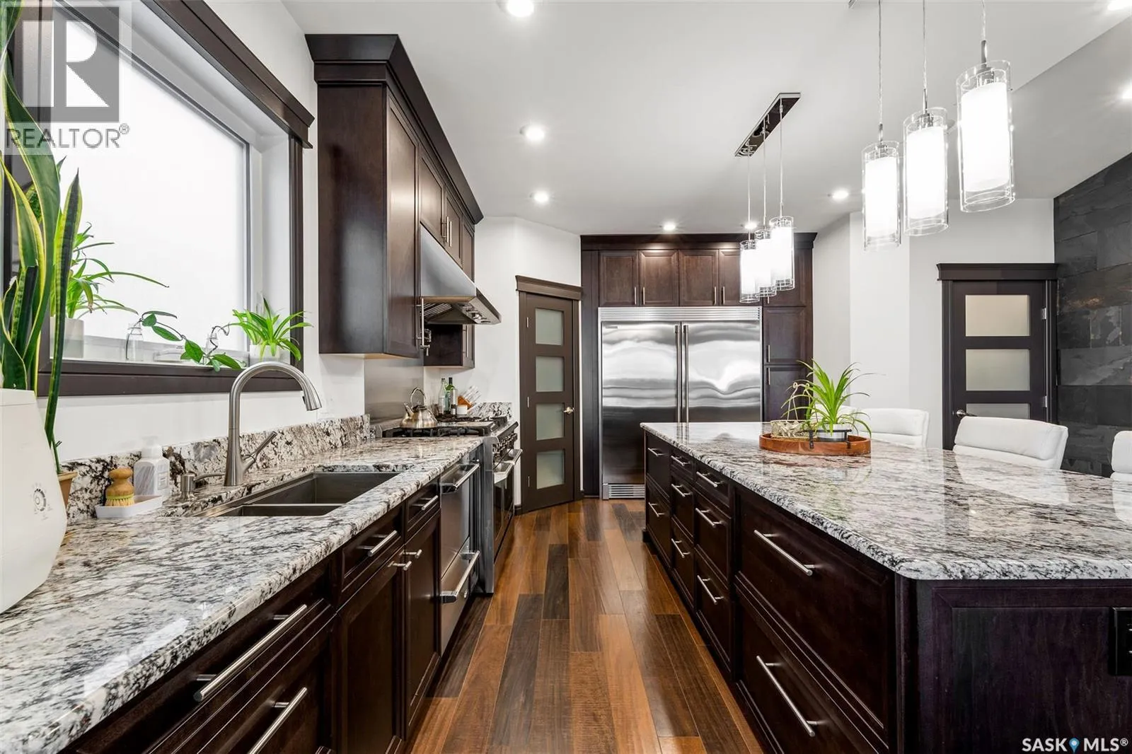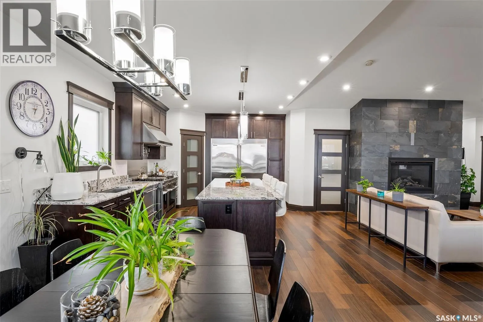 Lakefront Executive Style home at Humboldt Lake! Welcome to this stunning lakefront executive bungalow offering 1,733 sq. ft. of refined living space in a serene and private setting. Elegant Interiors & Gourmet Kitchen: The open-concept main living area features soaring vaulted ceilings and a striking natural gas slate fireplace, creating both warmth and elegance. A chef’s dream kitchen awaits with