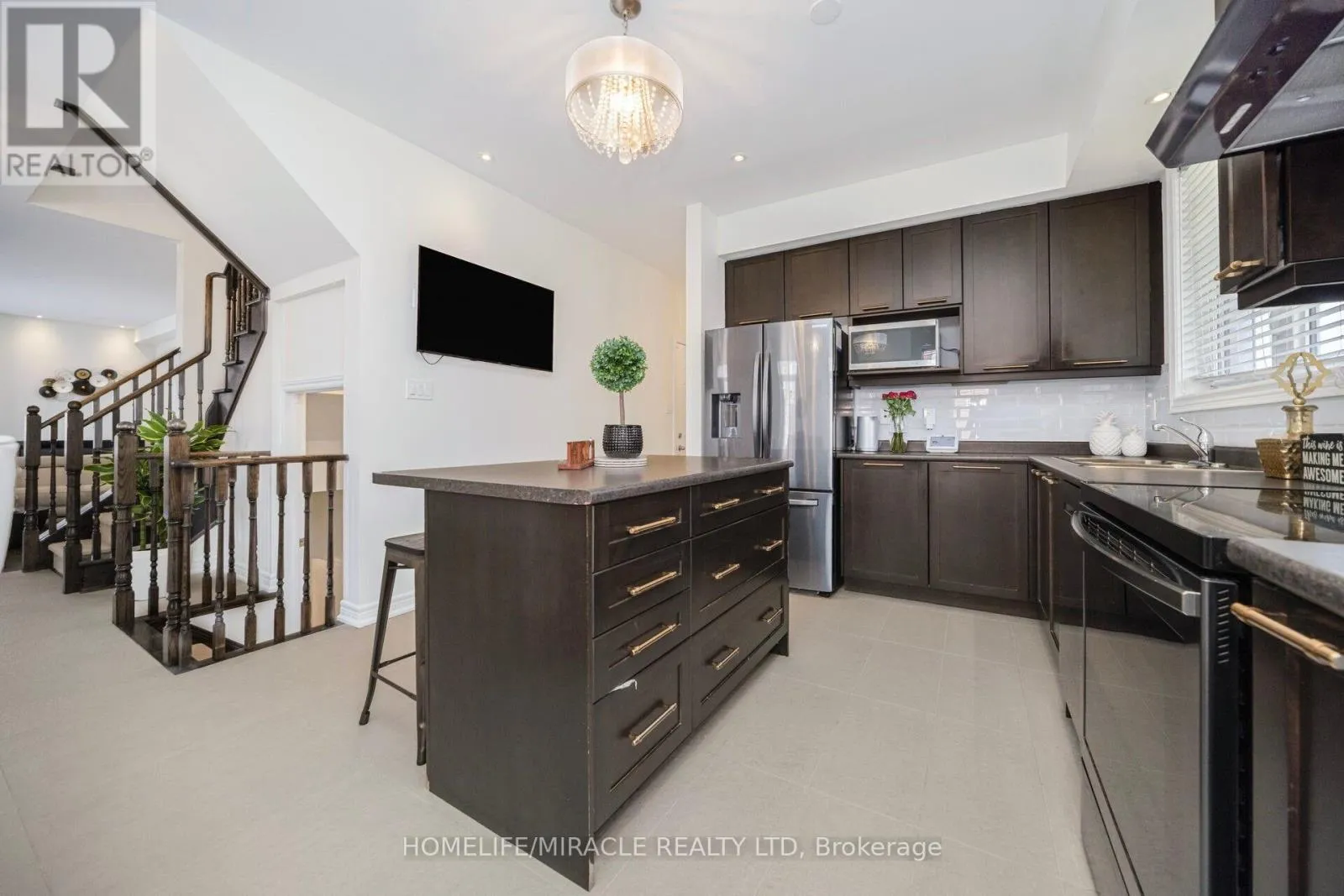 Welcome to this beautifully upgraded, one-of-a-kind end-unit townhouse-perfect for first-time buyers and growing families! This bright and spacious home is filled with natural light thanks to its desirable end-unit location, offering extra windows and an inviting, airy feel throughout. The open-concept main floor showcases quality finishes including upgraded porcelain grey tiles, engineered hand-scraped hardwood flooring, smooth ceilings, pot lights, and