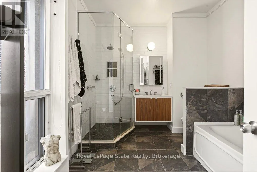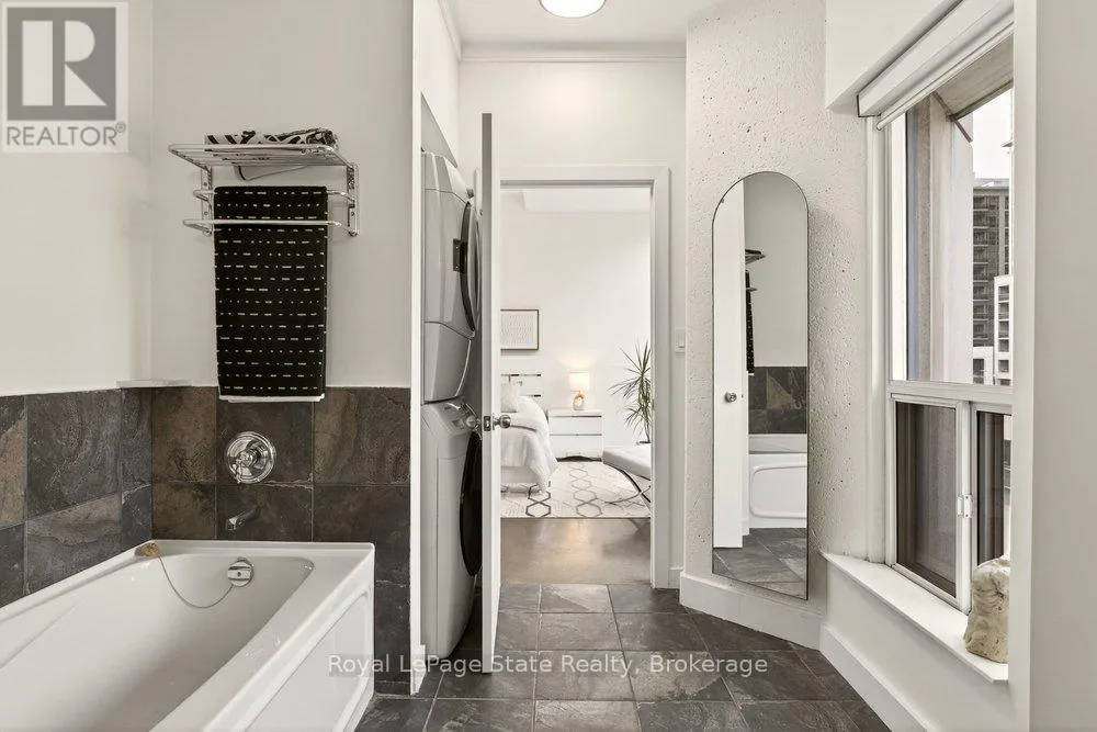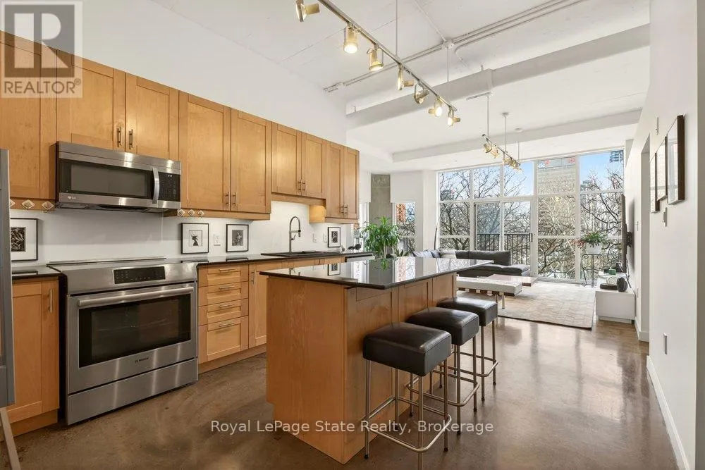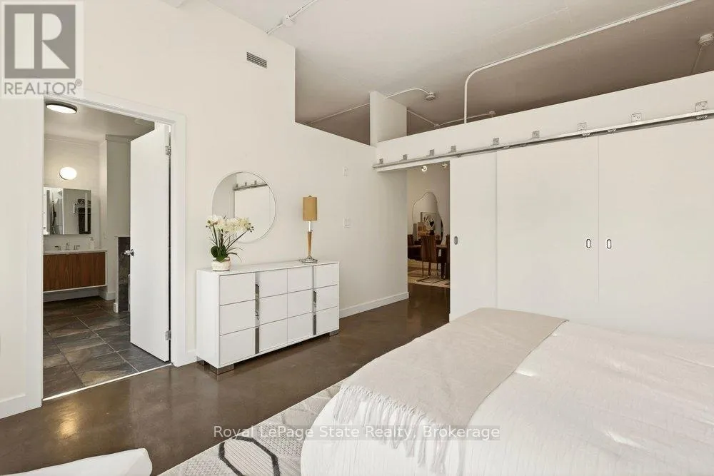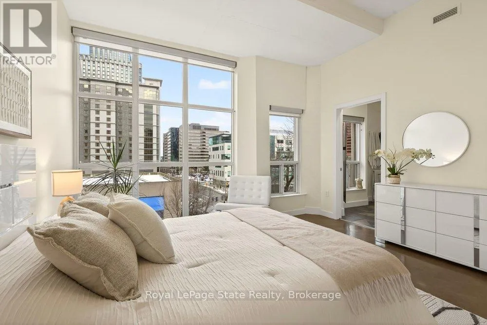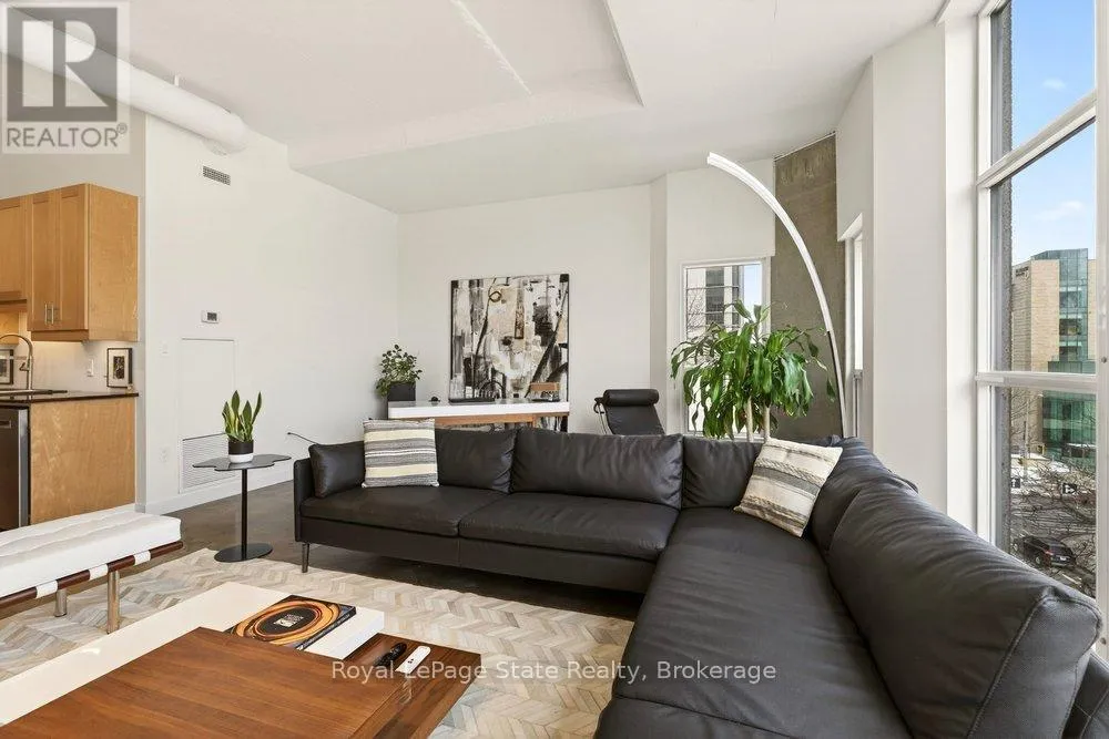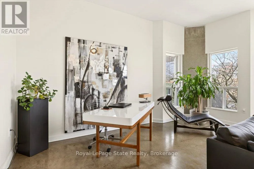 Welcome to Unit 401 at Core Lofts – a stunning corner suite in the heart of downtown Hamilton. Offering just over 1,500 sq ft of open-concept living space, this 2 bedroom, 2 bathroom loft combines industrial character with modern comfort. Featuring 10+ foot ceilings, polished concrete floors, and expansive floor-to-ceiling windows with desirable east and north exposures, this bright and