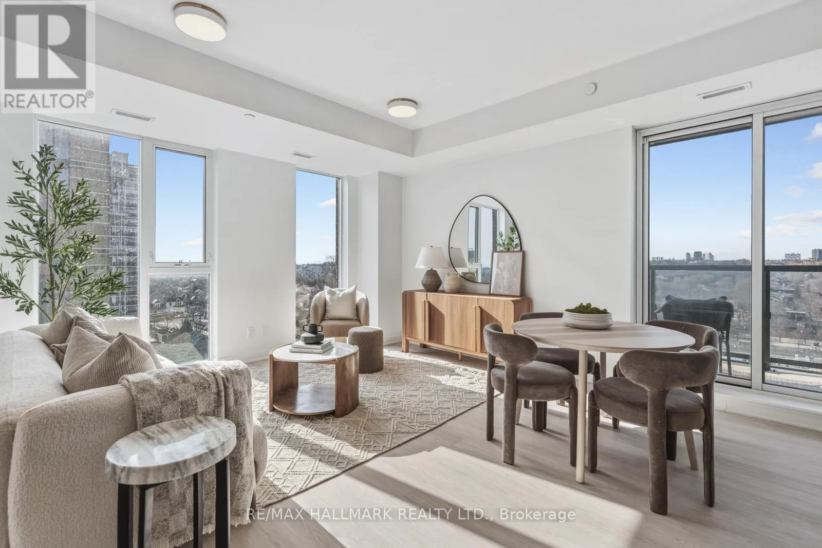 Welcome to Suite 1001, a beautifully appointed 2-bedroom plus den condo offering approximately 1,054 square feet of thoughtfully designed interior living space plus a private balcony. This well-proportioned suite features an open-concept layout with spacious principal rooms, wide-plank engineered hardwood flooring throughout, and a seamless flow ideal for both everyday living and entertaining. The modern kitchen is elegantly finished with