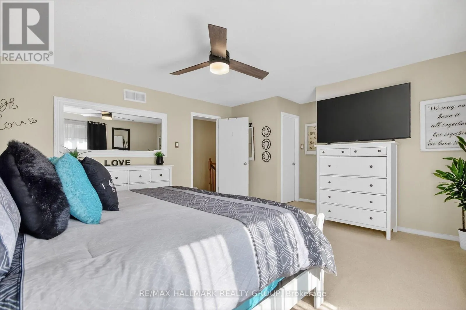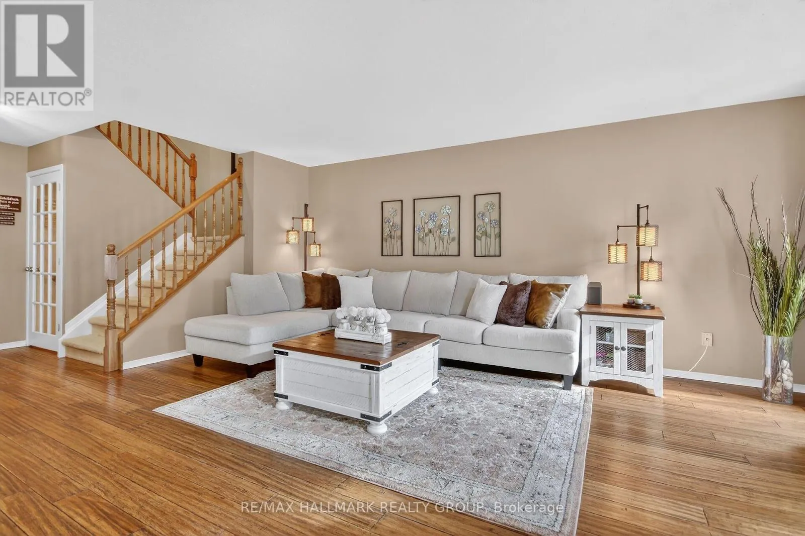 Minto Helmsley Townhome – this property is notable for its ample natural light, sophisticated decor, and peaceful setting. A front office/den ideal for home office, kids play room. The main floor features bamboo flooring and an open-concept living area, enhanced by a floor-to-ceiling stone fireplace with a custom barn beam mantel. The spacious kitchen offers extensive cabinetry, generous