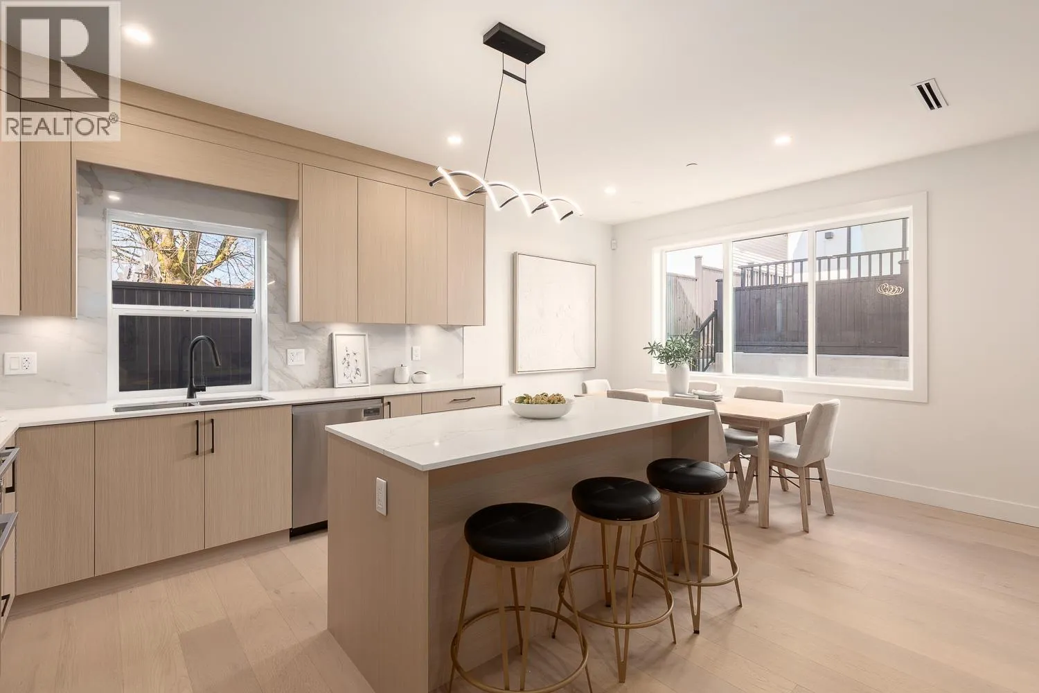 Rare TWO LEVEL 3-bedroom home at The Westline Collection. Enjoy 1,259 sqft of living space on a quiet tree lined street with NO STRATA FEES. The open main floor offers massive living and dining spaces, wide plank light oak engineered hardwood, and a Scandinavian inspired island kitchen with Fisher Paykel appliances, quartz counters and backsplash, under cabinet LED lighting,
