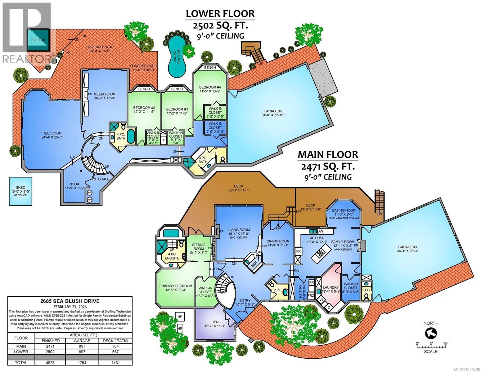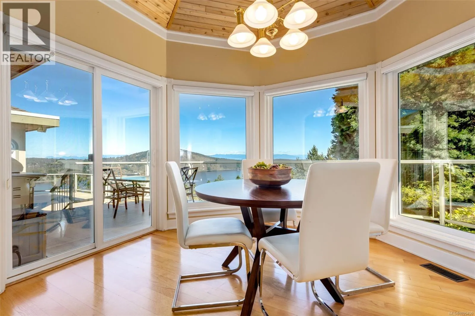 Set on a 5 acre ocean view lot just minutes north of Nanaimo, this well built 4973sf level entry home emanates quality. From the stately foyer with circular stairs to lower level, you enter a sunken living room with oversized windows to showcase the beautiful views of Nanoose harbour; a gas fireplace, bar, and slider onto the wrap-around deck provide