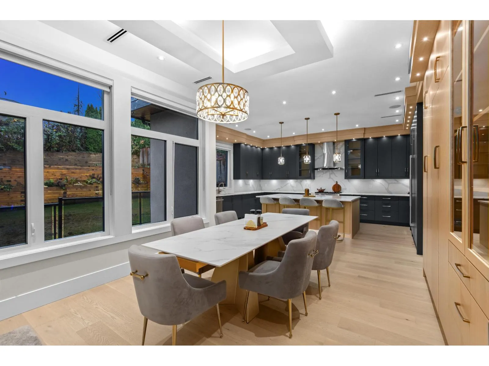Incredible world-class contemporary mansion in desirable Fraser Heights! This stunning residence offers views of the beautiful North Shore Mountains, and is situated in a Cul-De-Sac near premier schools (public and private), shopping, parks and easy highway access. This modern estate offers multiple primary bedroom suites, spacious living and dining areas, soaring ceilings, an executive home office, an absolute show-stopper kitchen