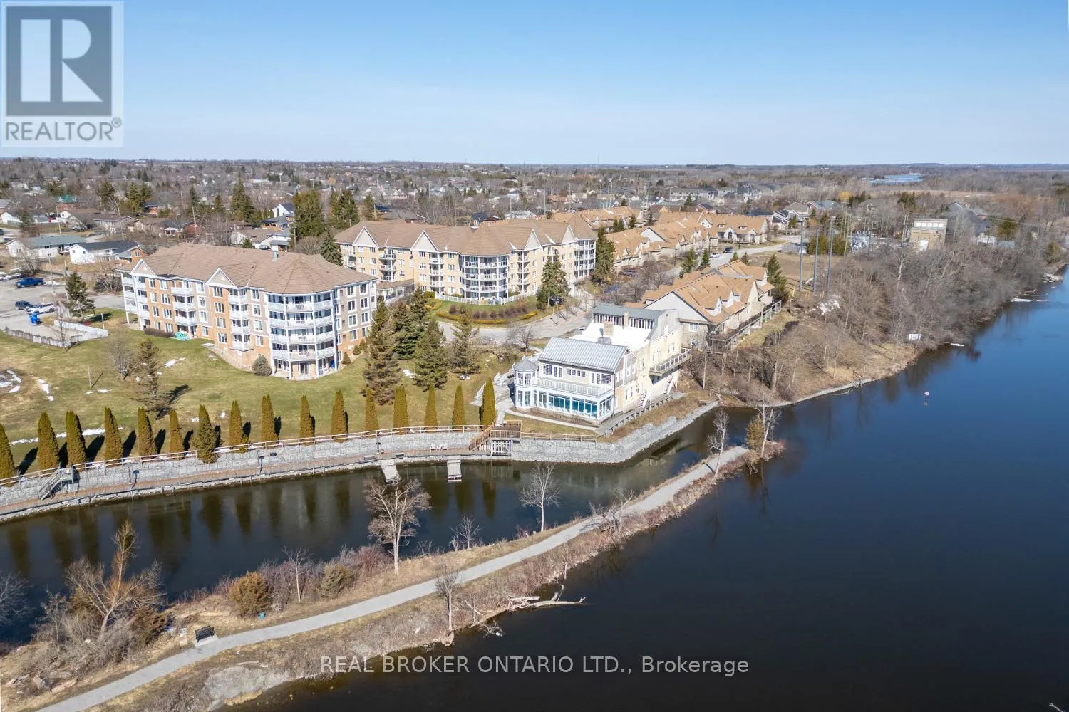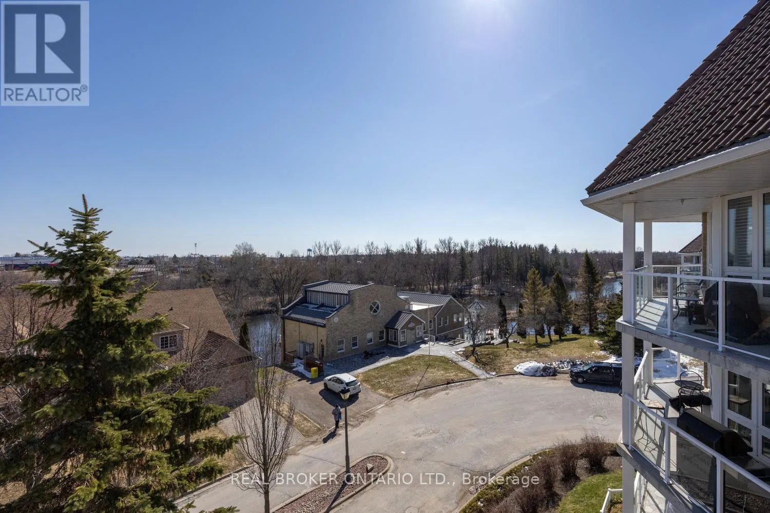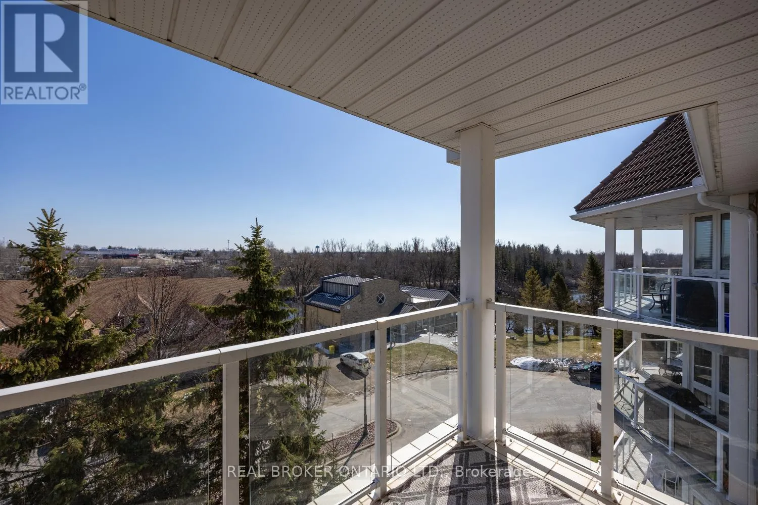 A rare penthouse find with wrap around balcony and spectacular views of the Scugog River. This impressive 3 bedroom unit offers approximately 1,705 sq ft of elevated, light-filled living space. From the moment you step inside, the spacious foyer with laminate flooring and crown moulding sets an elegant tone. The eat-in kitchen is designed for both everyday living and entertaining,