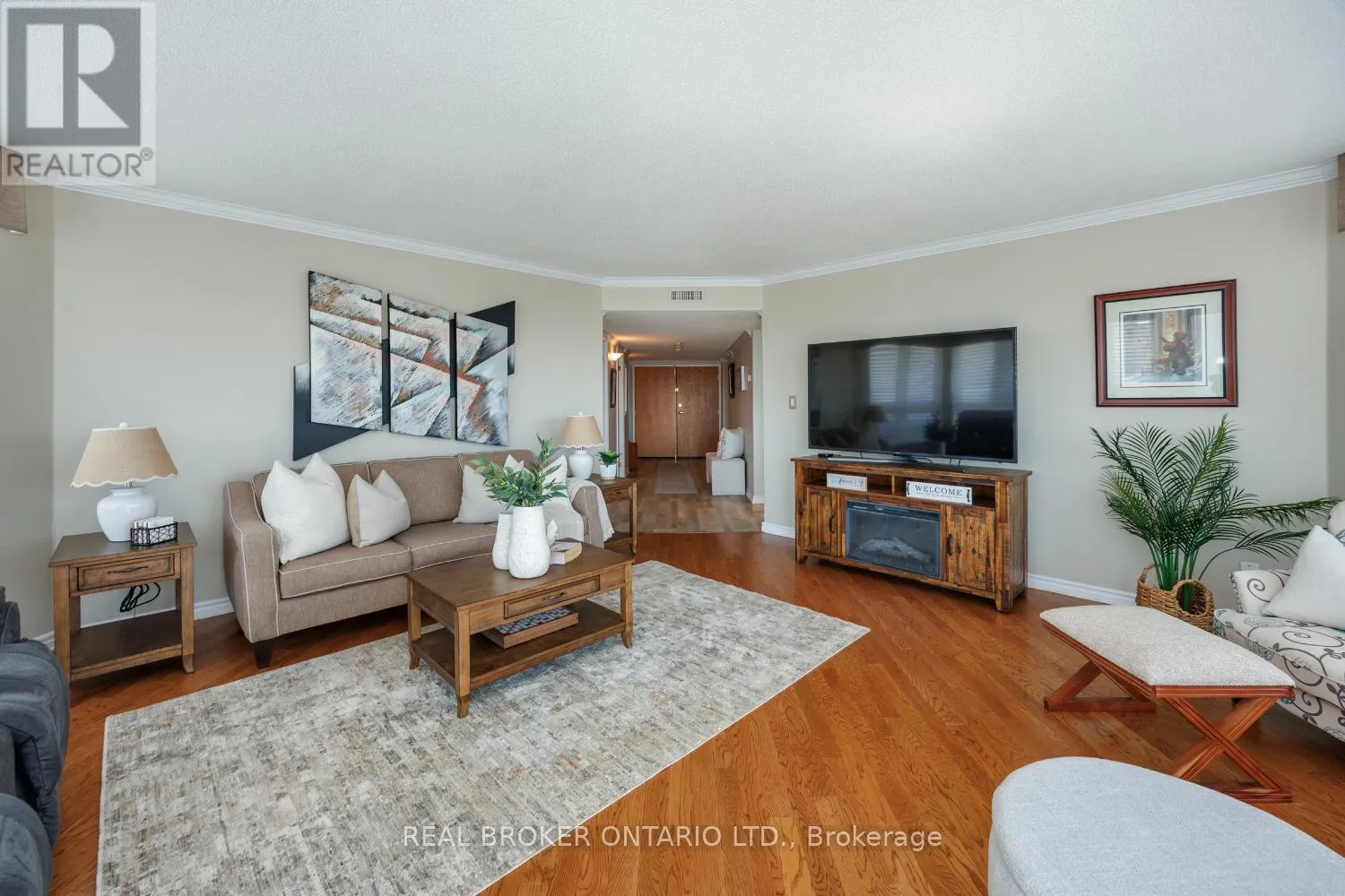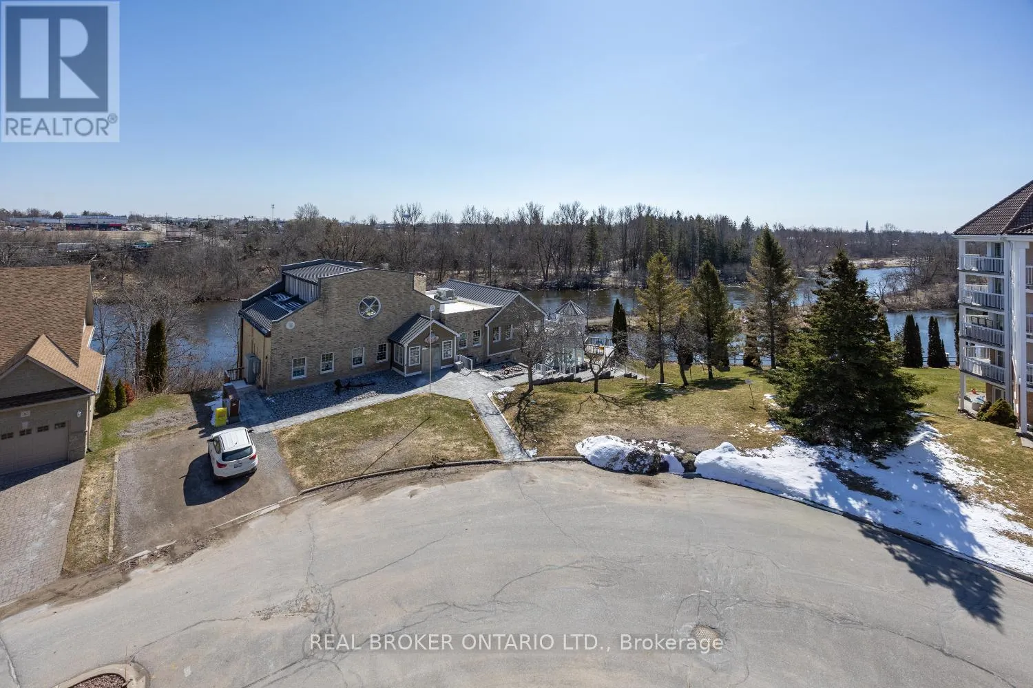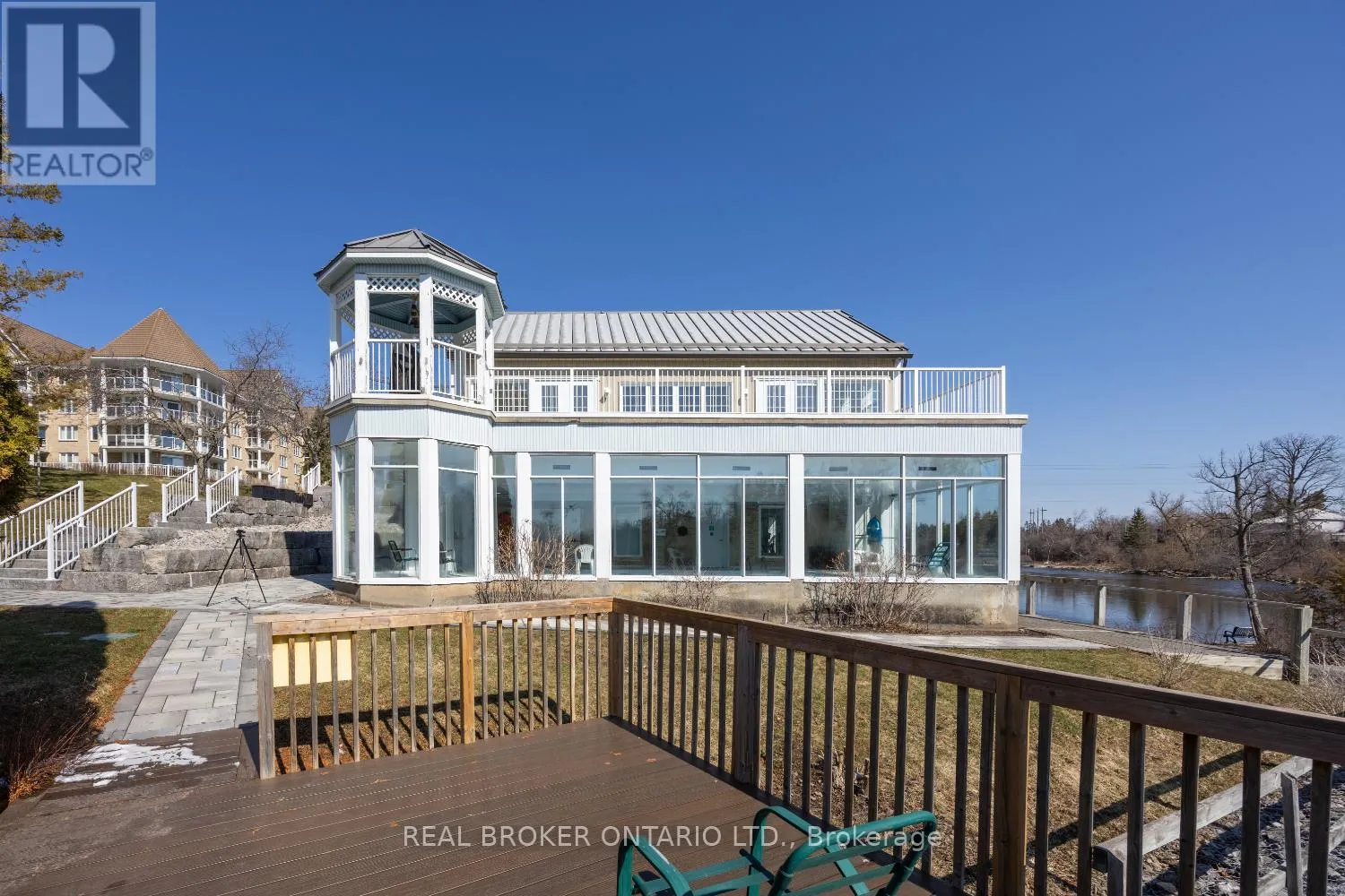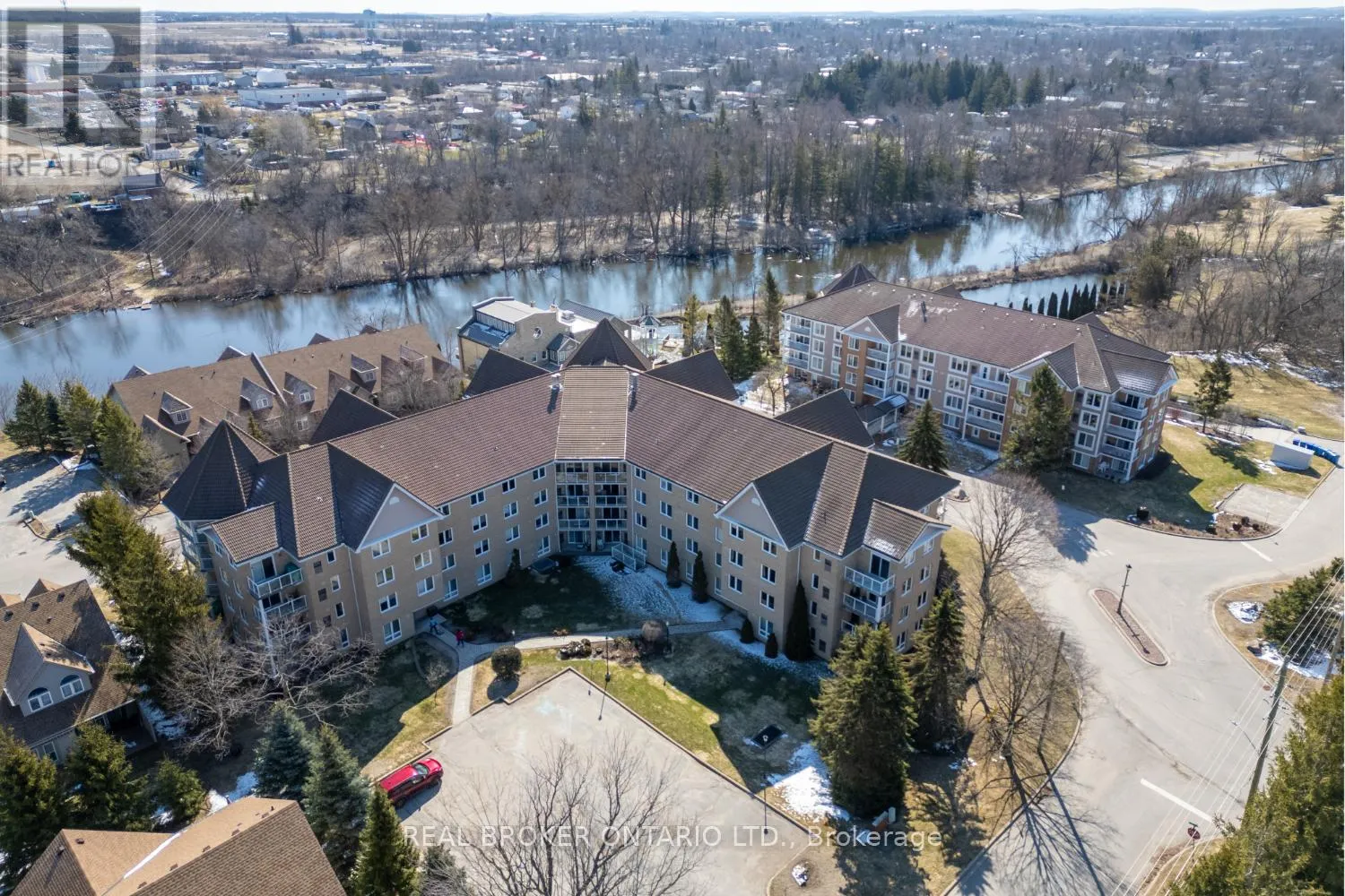A rare penthouse find with wrap around balcony and spectacular views of the Scugog River. This impressive 3 bedroom unit offers approximately 1,705 sq ft of elevated, light-filled living space. From the moment you step inside, the spacious foyer with laminate flooring and crown moulding sets an elegant tone. The eat-in kitchen is designed for both everyday living and entertaining,