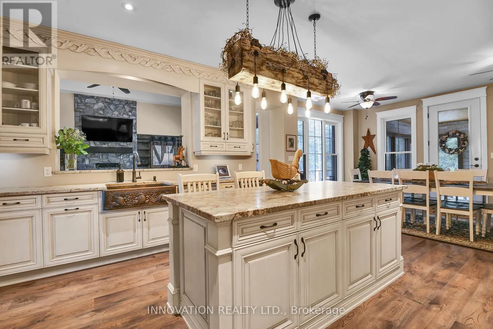 A VERY SPECIAL PROPERTY. This highly customized home was carefully crafted by the home owners with no detail overlooked. High ceilings in the primary living spaces have interesting detail with slopes and contrasting material to draw the eye upward. This is a true 4 bedroom large footprint bungalow. The primary Bedroom and two others each has an Ensuite bathroom. This