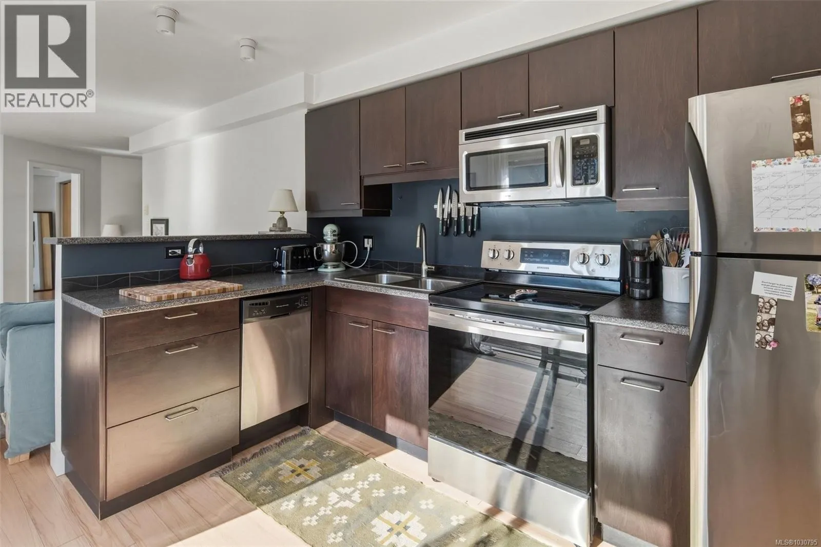 Welcome to Unit 303 at City Side, a thoughtfully designed 1-bedroom corner unit in Victoria’s vibrant Burnside neighbourhood. Enjoy 587 SF of efficient living space with large windows, sunny SE-facing exposure, and two private balconies, perfect for morning coffee or catching late day sun. The living room with dining nook flows seamlessly into the kitchen with modern stainless steel appliances.