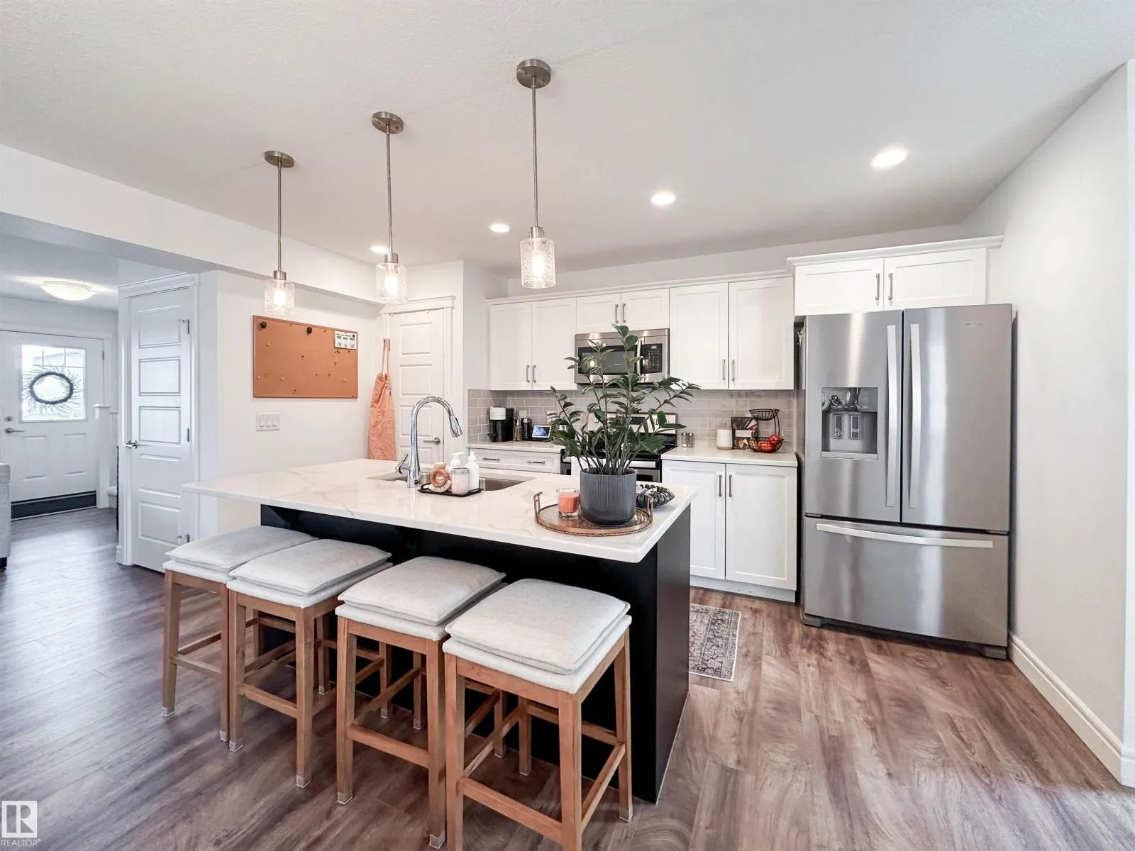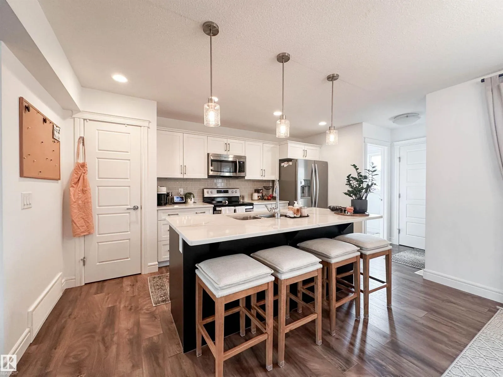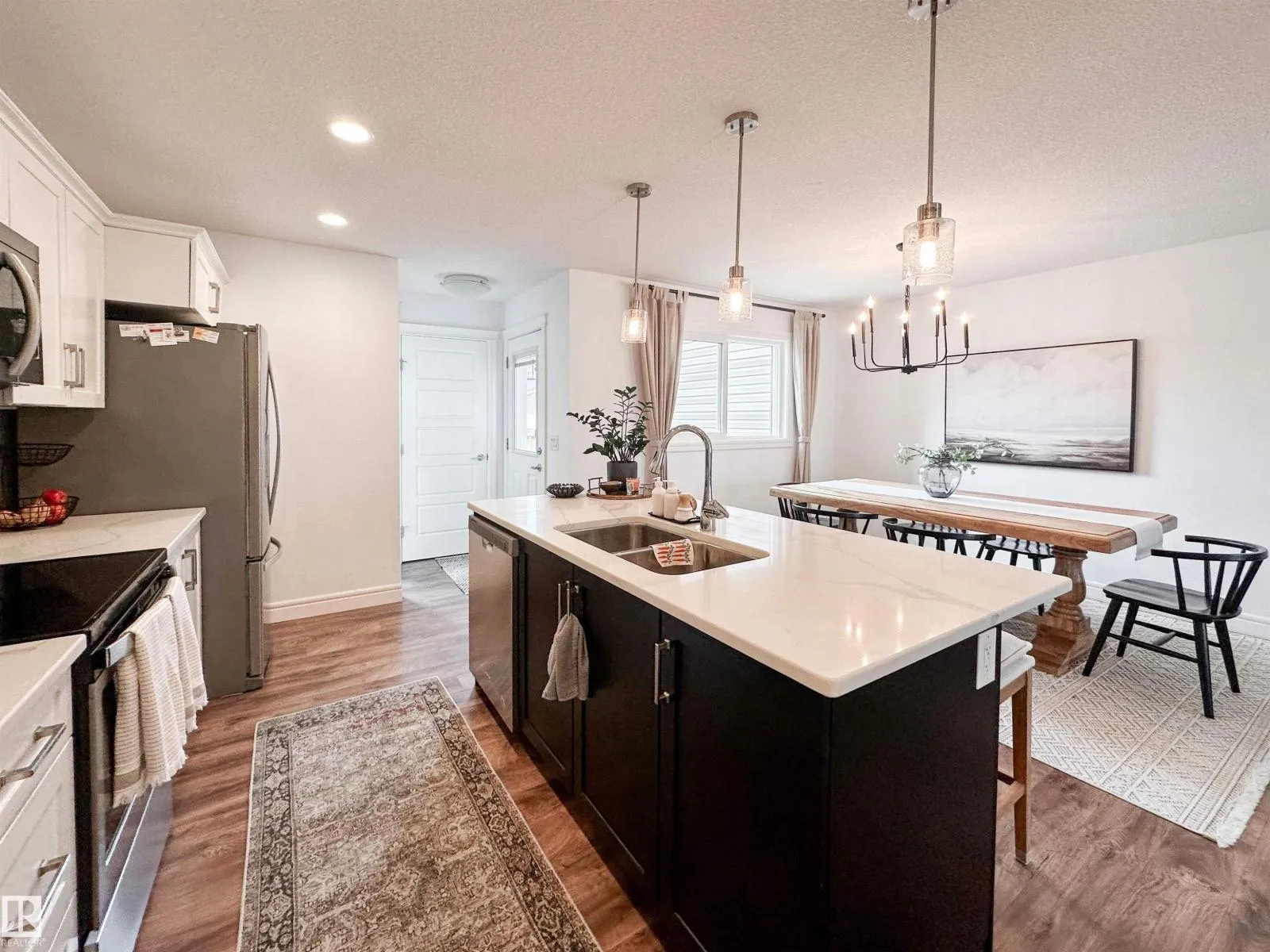 Meticulously maintained half duplex in the sought after community of Edgemont! This stylish home features an open concept main floor with spacious living and dining areas, plus a bright kitchen showcasing two tone cabinetry, stainless steel appliances, a pantry, and elegant quartz countertops. A convenient 2-piece bath and rear access lead to a private deck and sunny southwest facing yard,