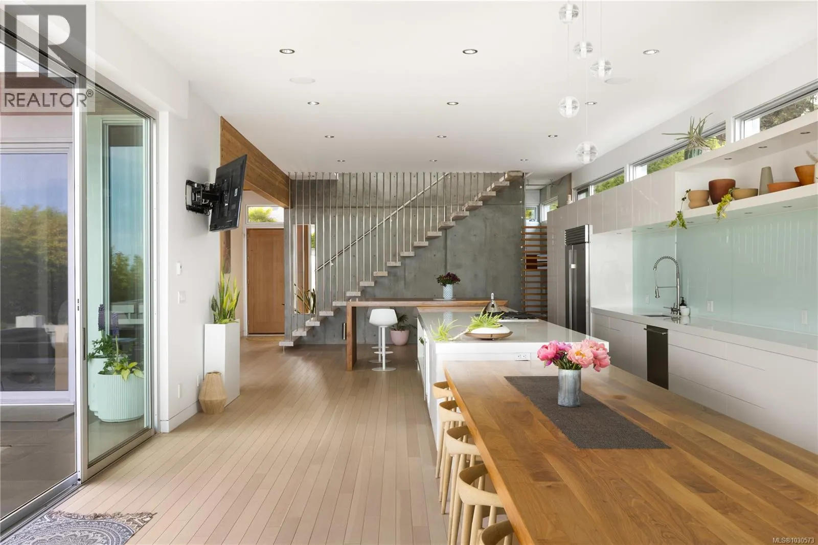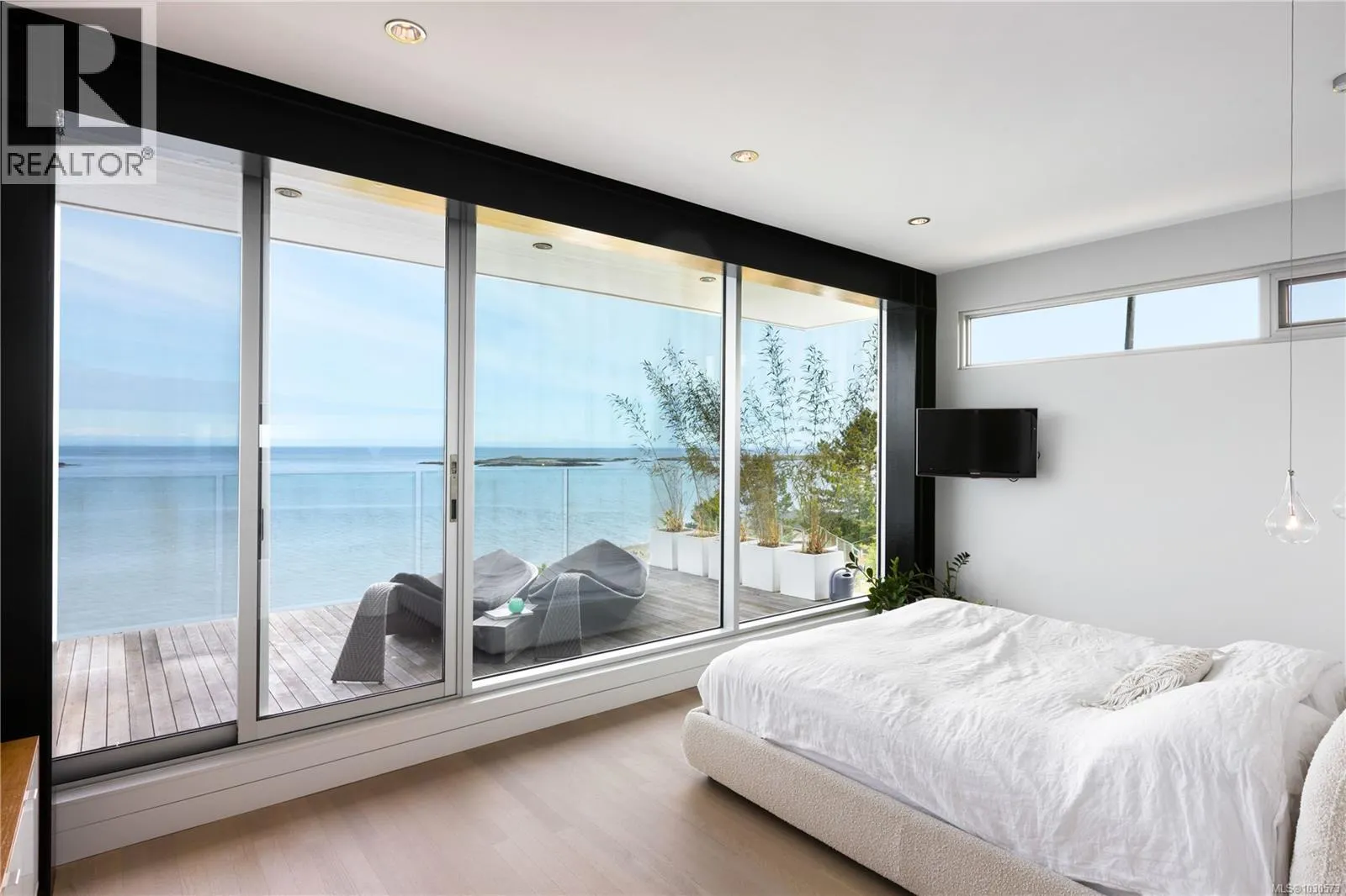 A striking example of modern minimalism perched on the southern edge of Oak Bay, this custom-built oceanfront residence offers panoramic views from nearly every room. Designed for seamless indoor-outdoor living, the main floor boasts 11’ ceilings and expansive glass walls that open onto multiple patios, a sleek swimming pool, and a dedicated gym/studio. The chef’s kitchen features integrated appliances and