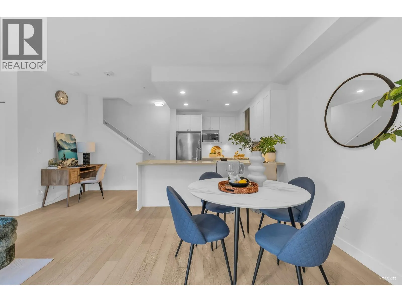 Tucked beside a park in a lush, friendly community, this charming 2-bedroom townhome offers a calm, easy lifestyle with everything close at hand. The bright, open main level and clean, square floorplan feel instantly comfortable-simple to live in, easy to furnish, and perfect for hosting. Enjoy engineered hardwood in the main living areas, a full appliance package, and front-loading washer/dryer.