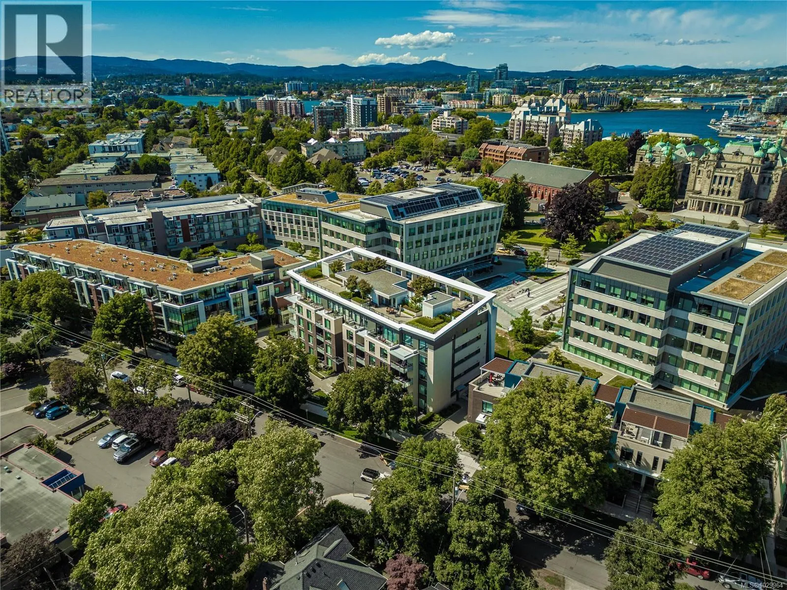 Welcome to Capital Park, a boutique 5-storey steel & concrete development built to the highest standards. Enjoy inviting courtyards, peaceful walkways & calming water features, all nestled in charming James Bay, just steps from the scenic Inner Harbour. This south-facing home offers a convenient townhouse-style private entrance through a spacious 151 square-foot fenced & gated terrace surrounded by lush landscaping.