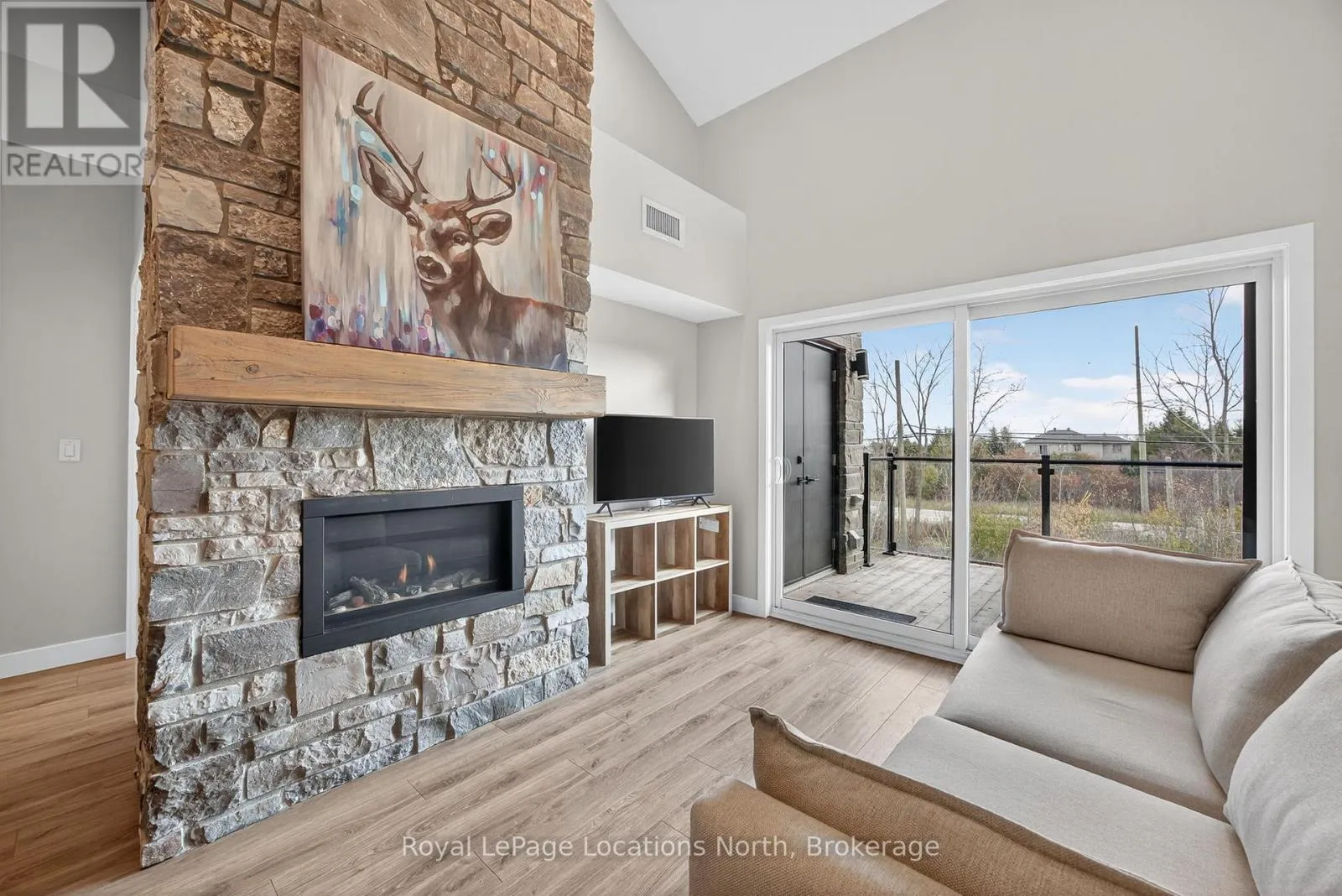 Annual or seasonal rental. 3-bedroom, 2-bathroom two-storey loft-style condo in the highly desirable Mountain House community. This modern unit offers an open-concept layout with soaring ceilings, upgraded finishes, and a bright, spacious living area complete with a natural gas fireplace. The kitchen features contemporary cabinetry, quartz counters, stainless-steel appliances, and an ideal flow for entertaining. The loft-level primary bedroom provides