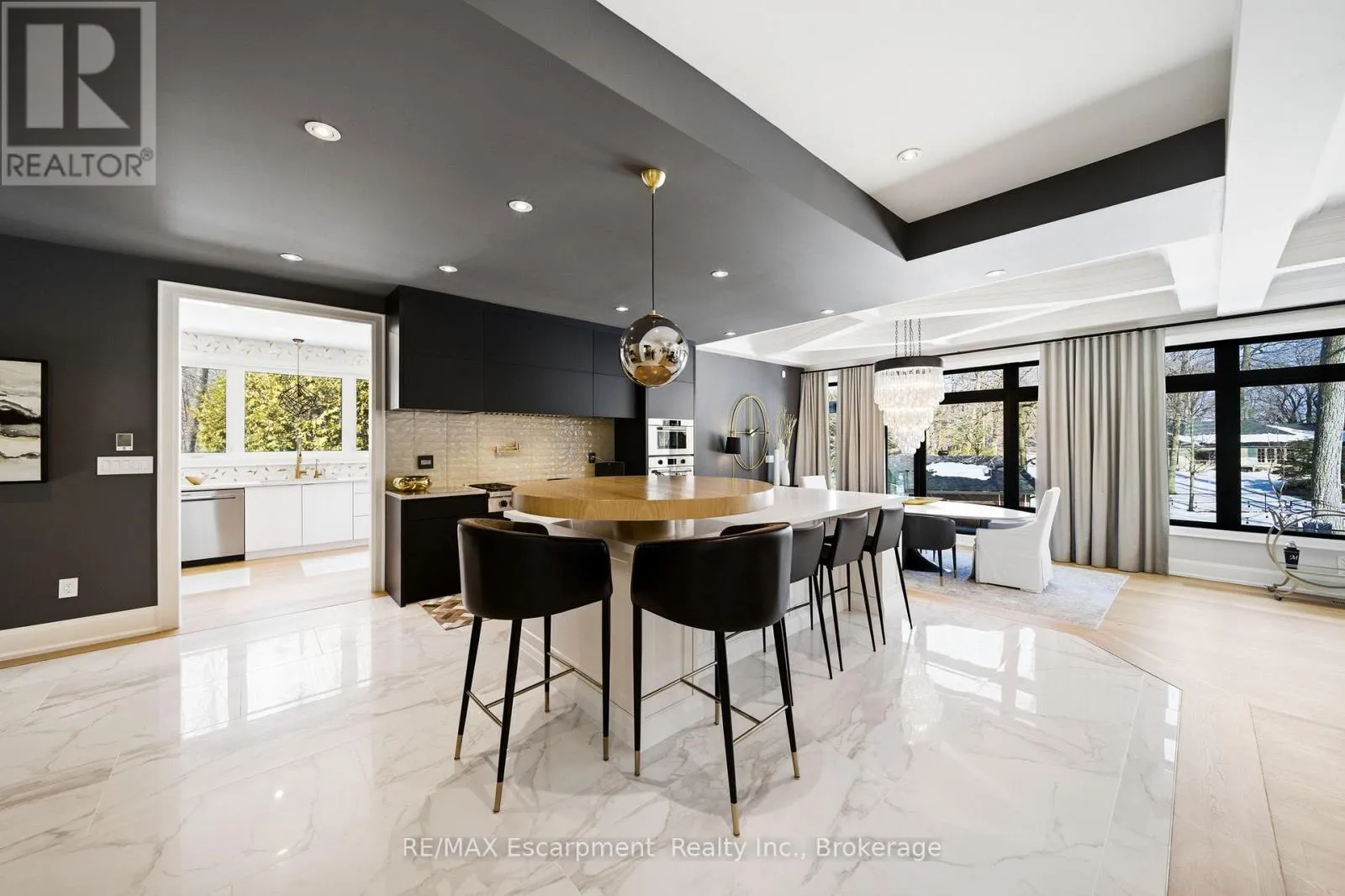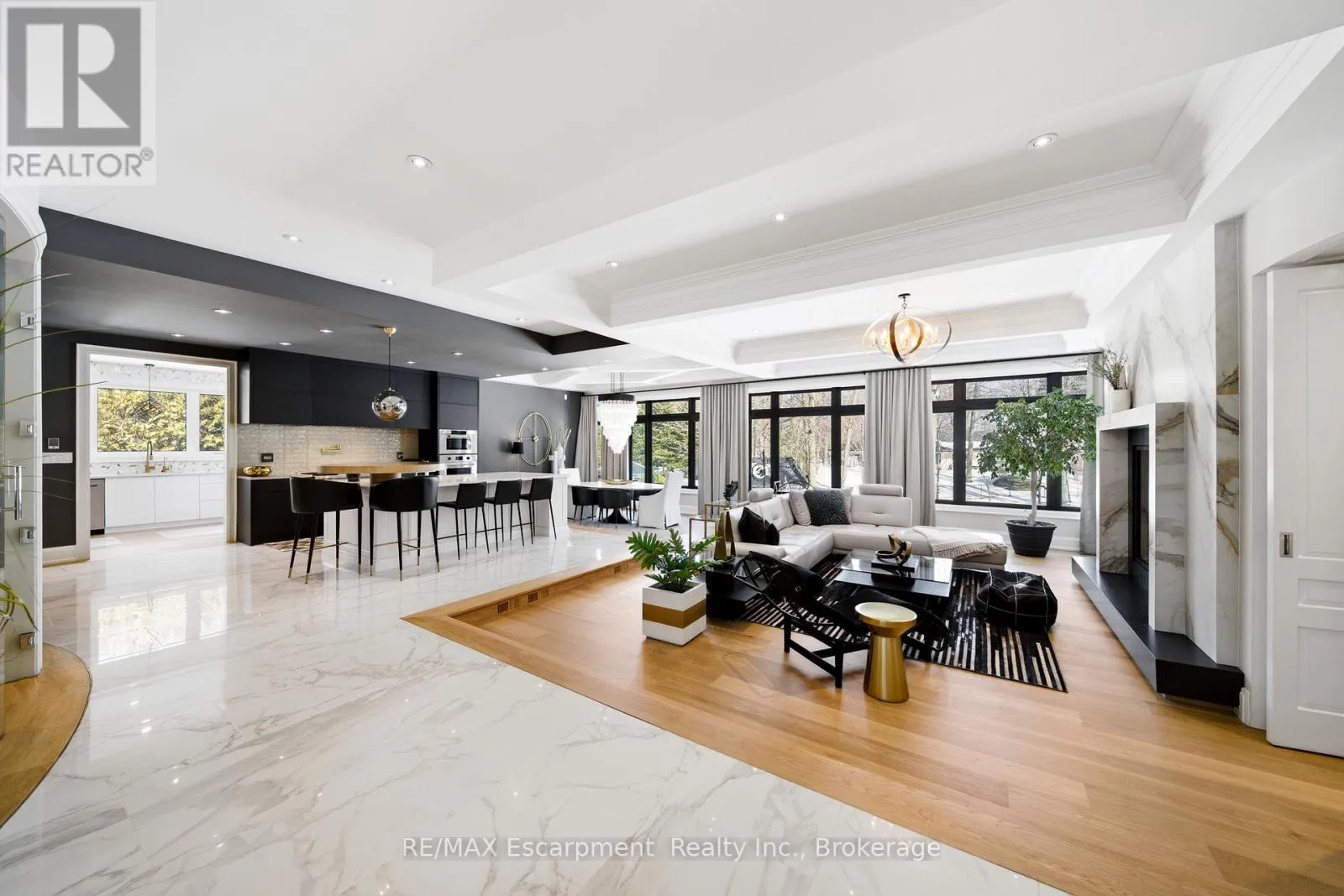 Rare offering on 2 private acres in one of Burlington’s most sought after estate communities. Fully renovated bungalow with over 6,000 sq ft of finished living space, beautifully designed for everyday living, entertaining, and long term flexibility. An incredible chef’s style kitchen features Wolf and SubZero appliances and a large multifunction island while the separate prep kitchen is ideal for