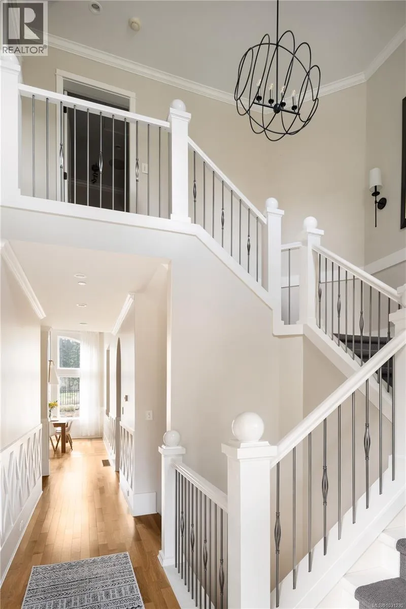 Located on the 16th hole of the Bear Mountain Golf Course in Victoria, BC, this exceptional 4,043 sq ft single-family home embodies refined West Coast living. Set among stunning natural vistas, the property offers a rare combination of privacy, serenity, and security. Upon entry, this turnkey home reveals a striking sightline leading to a breathtaking dining room and great room