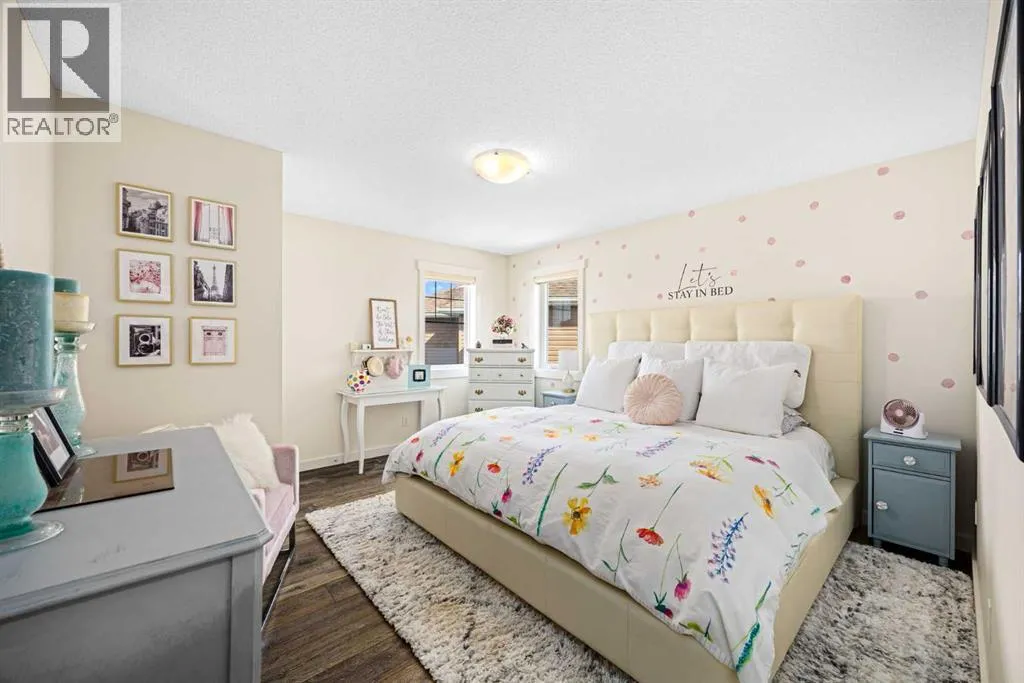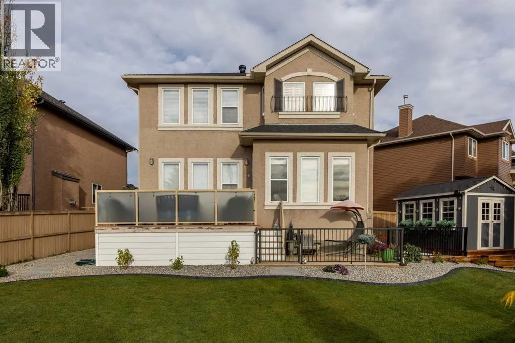 patio doors in 2022, a new garage door and opener in 2023, and major interior renovations completed in 2024, featuring updated tile flooring, refreshed bathrooms with modern fixtures, custom built-ins, and a fireplace. The professionally developed basement (2023) includes heated bathroom flooring and flexible living space, while the complete backyard landscaping transformation in 2025 created a beautiful outdoor setting on a pie-shaped lot. Hardwood flooring, granite countertops, updated appliances, and thoughtful improvements throughout further enhance this move-in-ready home.Welcome to this beautifully maintained California stucco–inspired home, lovingly cared for by its owners for over 20 years. From the moment you step inside, you’ll feel how intentionally this home was designed for a growing and busy family, while still offering spaces to relax at the end of the day. Large windows throughout every level flood the home with natural light, creating warm and inviting spaces.The main floor layout is both functional and refined, featuring a private powder room tucked away for guests, a bright home office, and a mudroom with convenient laundry access directly from the garage. At the heart of the home, the kitchen, dining, and living areas come together beneath tall ceilings, creating a grand yet comfortable setting ideal for everyday living and entertaining.Step outside to the south-backing deck, where indoor and outdoor living blend seamlessly. The beautifully landscaped backyard offers the perfect setting for hosting fires, kicking a ball around, o r simply enjoying open space. A large wood shed provides excellent organization for tools, toys, and seasonal storage.Upstairs, the thoughtfully separated bedroom layout places each room in its own corner of the home, creating privacy for everyone. The owner’s suite, positioned on the south side, is filled with natural light and offers a peaceful retreat, complete with a beautifully updated ensuite featuring dual vanities, heated flooring, and a spacious walk-in closet.Located in one of Evergreen’s most desirable communities, this home reflects years of pride of ownership and thoughtful investment—and is ready to become part of a new family’s next chapter. (id:64429)