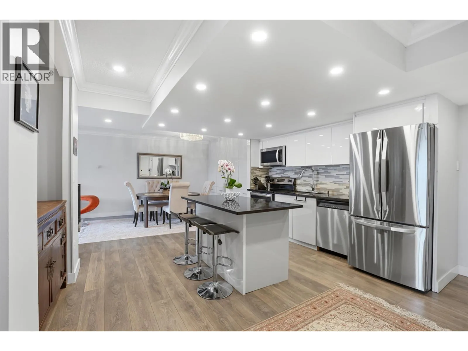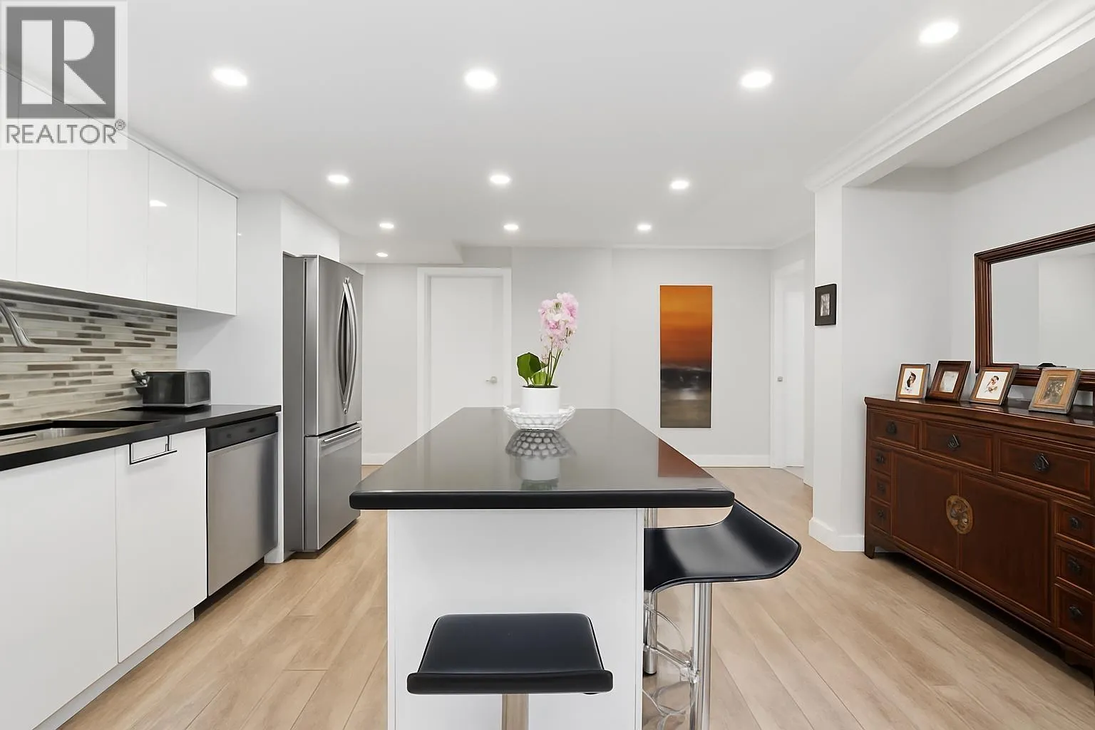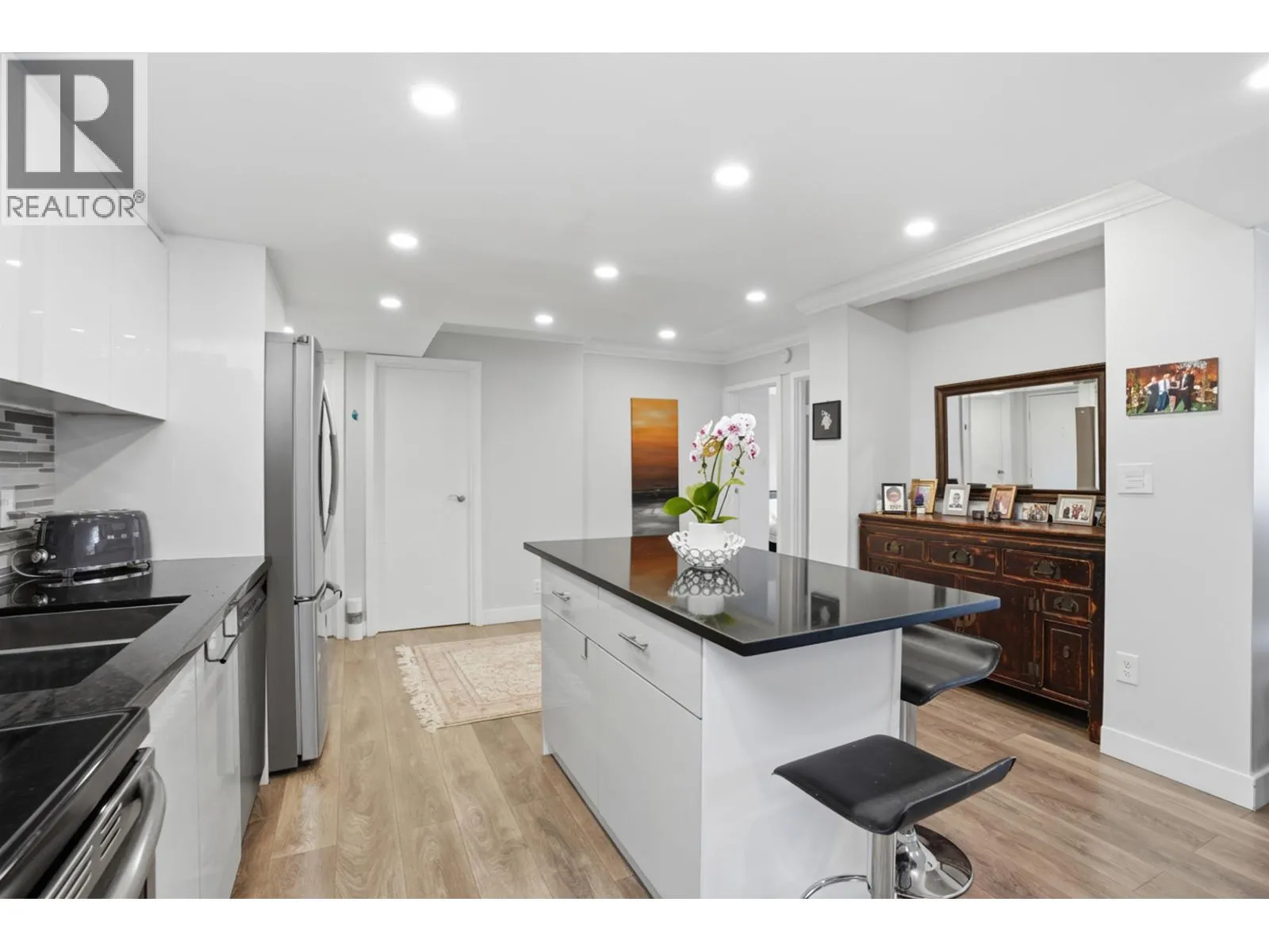 Fully renovated luxury and spacious penthouse 2 bedroom suite with a large private patio and unobstructed mountain views in the popular Capilano building in Woodcroft. Great for first time buyers or young professionals. Amazing open floor plan. Features include new appliances, soft closing cabinets, large kitchen island, laminate flooring, customized lighting and LED pot lights throughout. Additional onsite storage/den adds