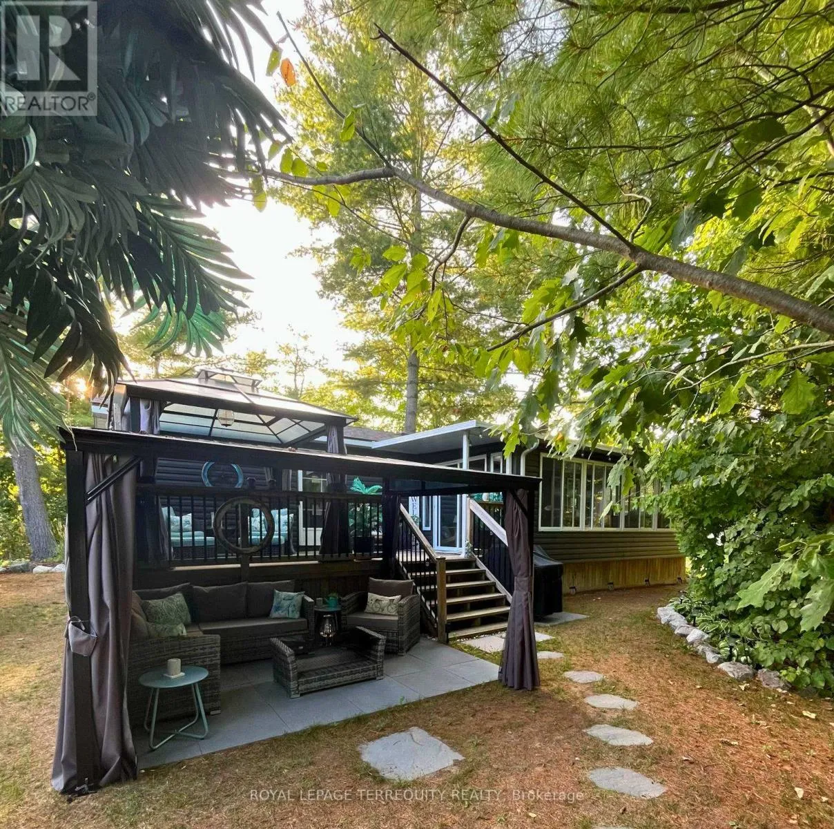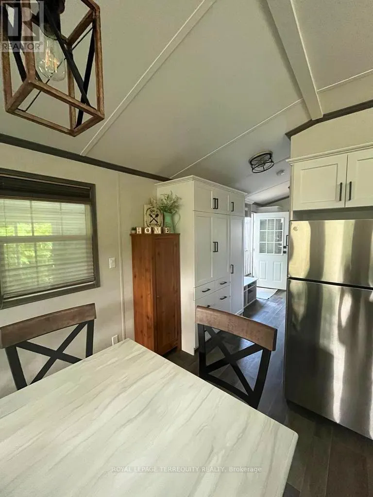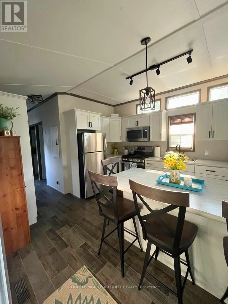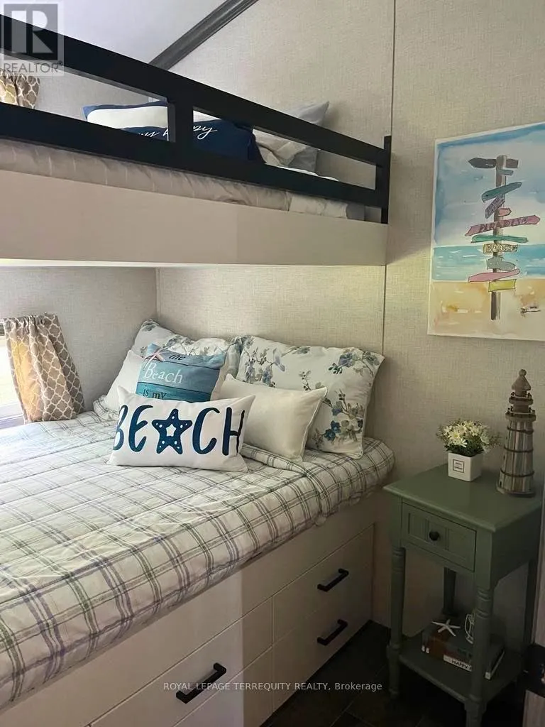 Turnkey 2-bedroom seasonal retreat on a premium private ravine-backed lot in the highly sought-after Pioneer Point community, offering the perfect balance of privacy and vibrant resort living. This impeccably maintained 2019 General Coach Manchester model includes a bright 23′ x 11′ sunroom addition, stainless steel appliances (2024), modern lighting, Moen and Kohler fixtures, and stylish high-end furnishings throughout. The outdoor