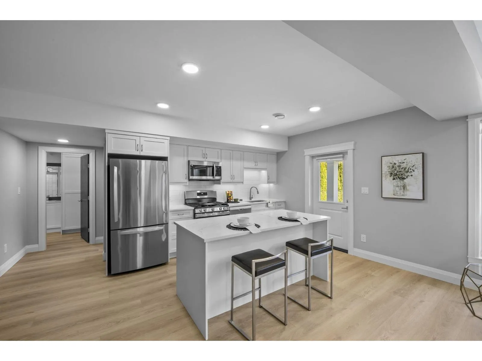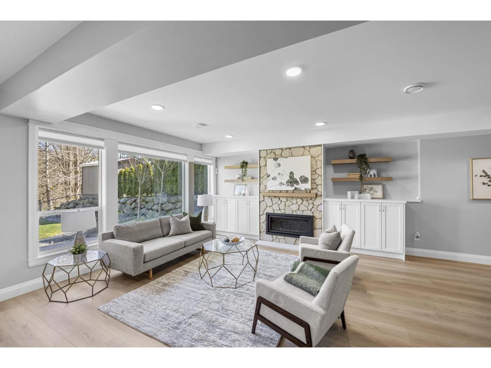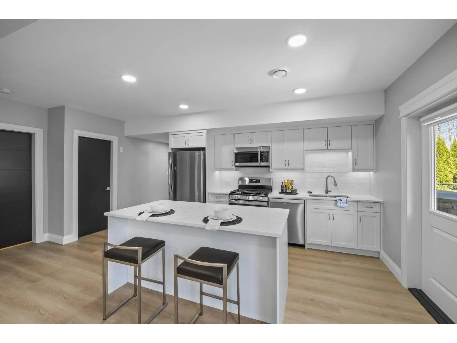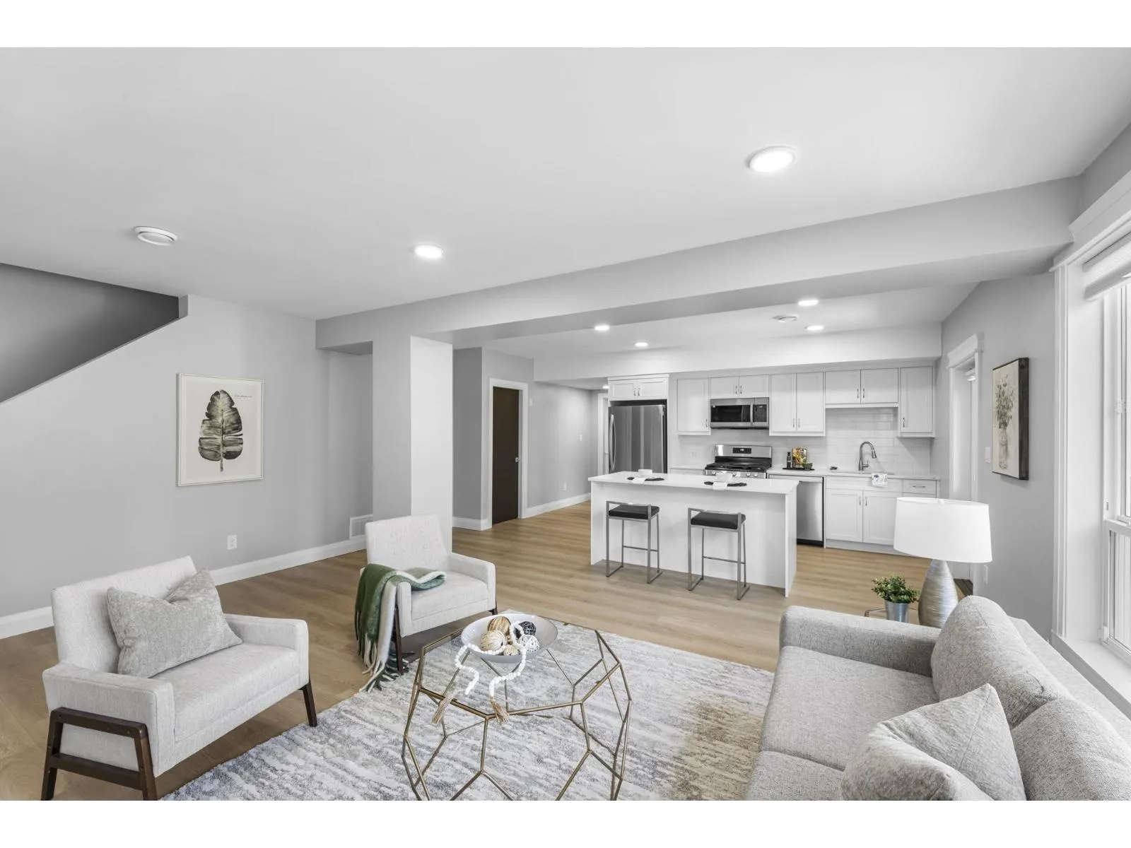 This stunning home offers 5 bedrooms + den and 4 bathrooms across two storeys with a fully finished walkout basement. Step into a bright and spacious main floor featuring soaring vaulted ceilings with a tiled gas fireplace. The chef-inspired kitchen is perfect for entertaining, showcasing a huge island, quartz countertops, tiled backsplash, S/S appliances with a gas range, plus the