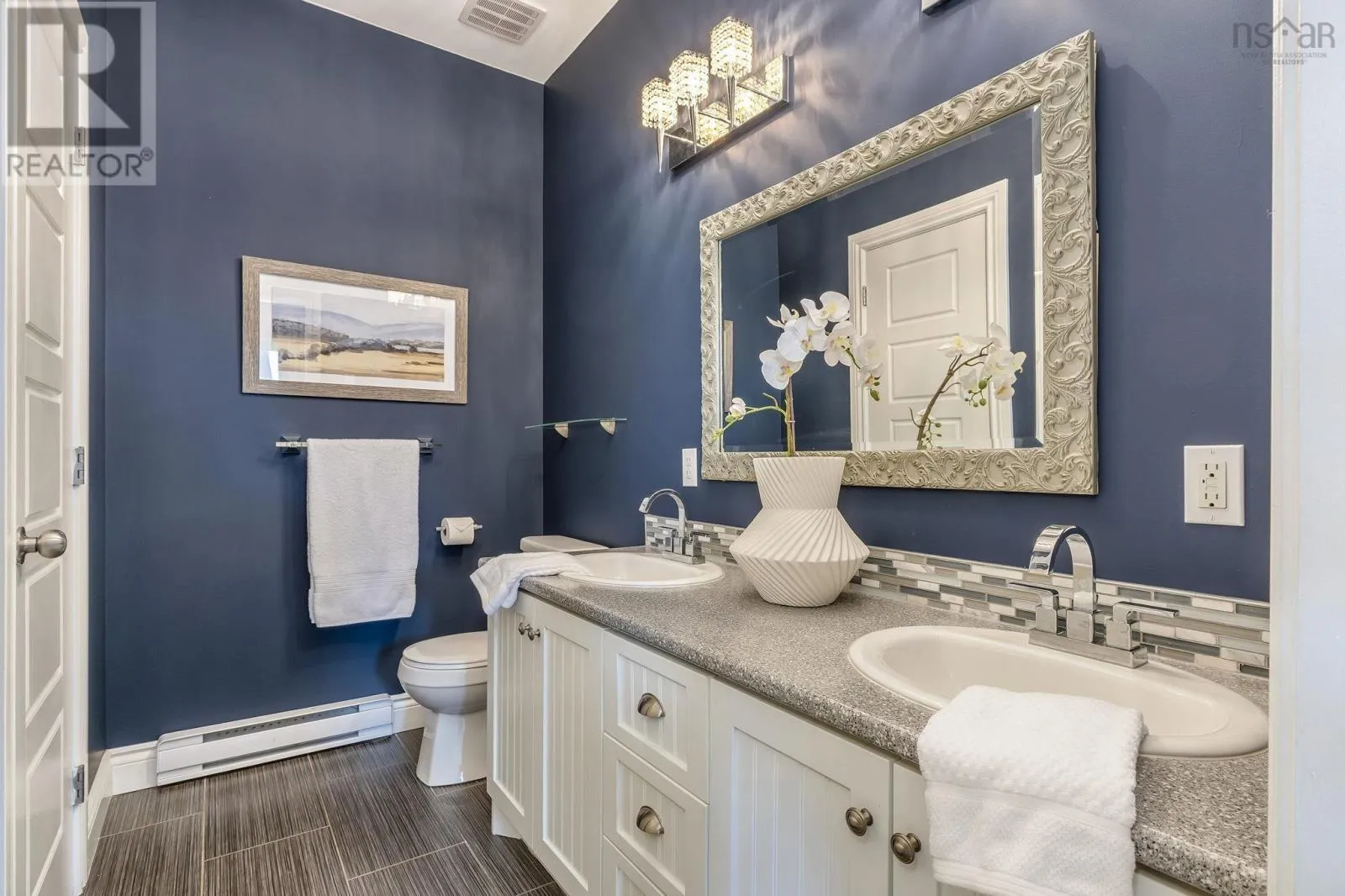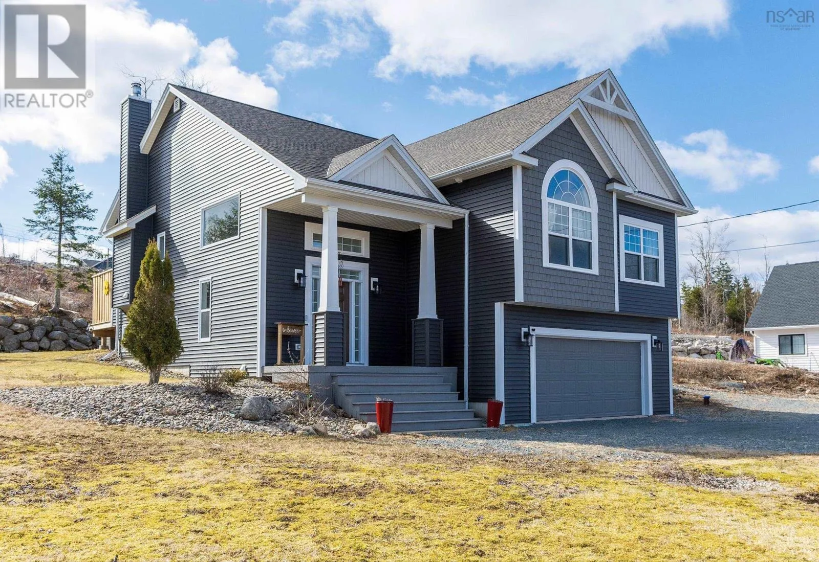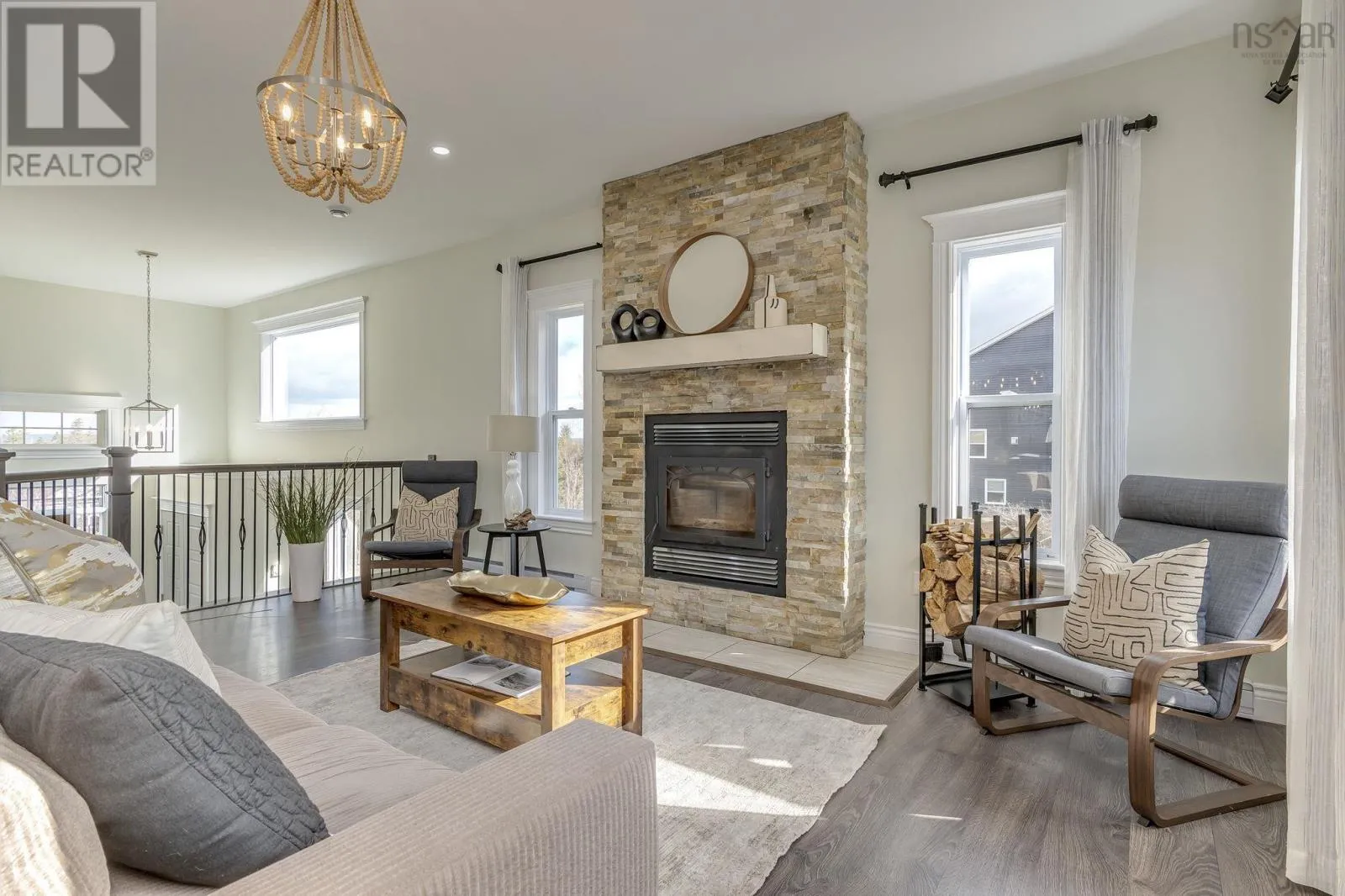 Welcome home to this stunning 4 bdrm, 3 bath, 2,412 sq ft executive split-entry home located on a quiet cul-de-sac in sought-after Westwood Hills, Upper Tantallon. This home offers exceptional custom design & finishes with soaring 9 ft ceilings throughout and features a floor-to-ceiling stone wood-burning fireplace, custom lighting, incredible outdoor living, & expansive views. The open-concept great rm features