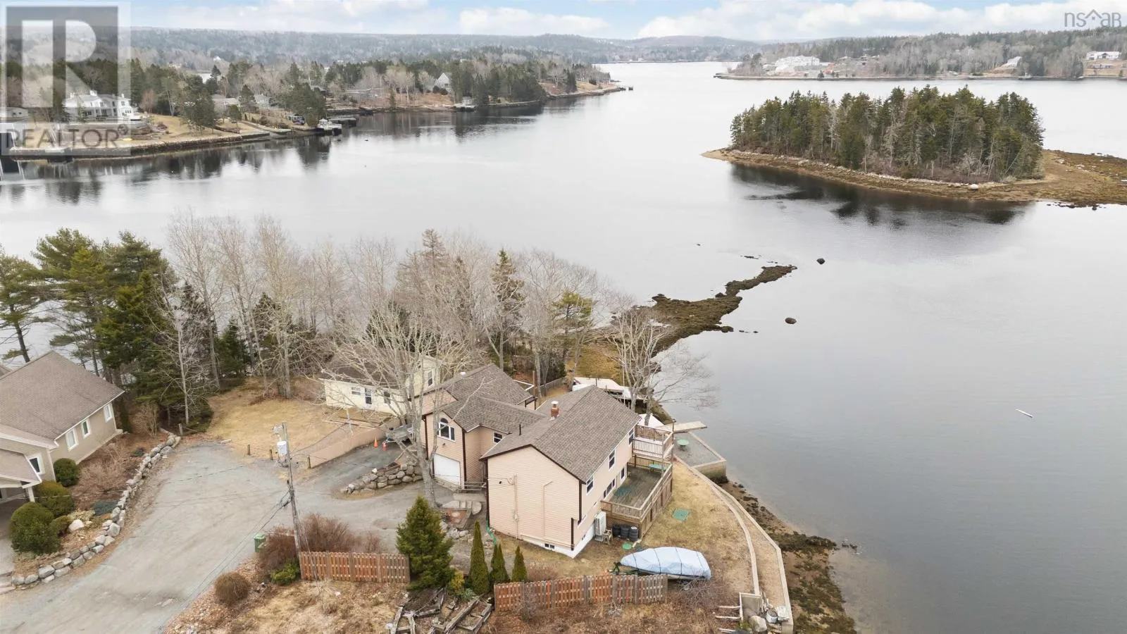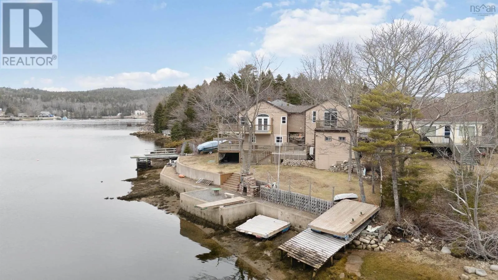 Waterfront Home on Todds Island, St. Margarets Bay – 157 feet of waterfront with a one-bedroom in-law suite with own entrance and amenities. This 70-year-old home boasts incredible bones, updates and a truly unique multi-level layout. Highlights: Sweeping Bay views from multiple decks with an elevated living room perched above the garage. Private waterfront lot with sea