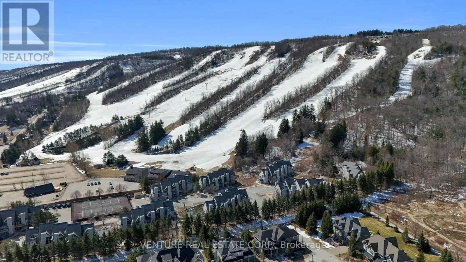 North Creek Resort at Blue ~ income plus enjoyment! This unit is steps from the ski gate to Blue Mountain ski hill. This Unit comes Fully Furnished! The living room features an electric fireplace and sliding doors to an oversized covered deck – ideal for morning coffee overlooking the runs. The kitchen includes an Island and breakfast bar