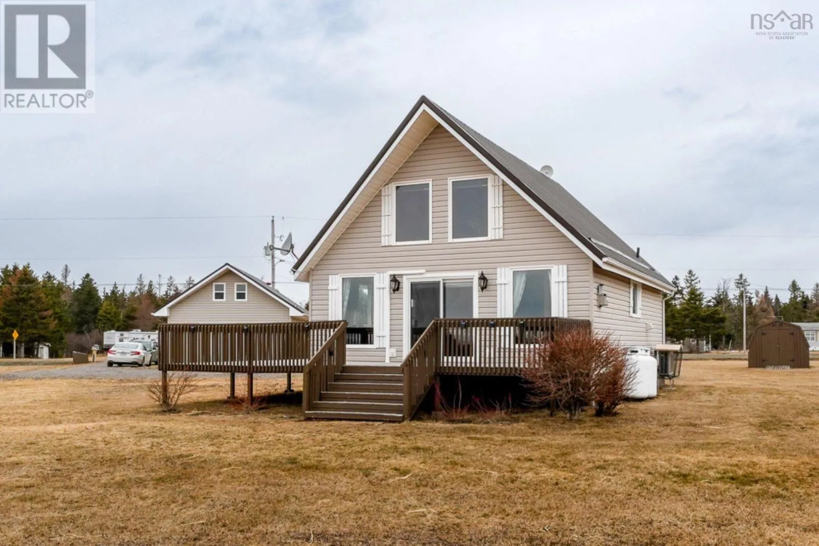 Welcome to this charming chalet-style home, perfectly situated on a spacious double lot totalling 1.5 acres with breathtaking views of the Bay of Fundy. This delightful property features two bedrooms, including a loft-style primary bedroom that offers stunning ocean views. The home includes one bath, a convenient laundry room and/or office space, making it suitable for year-round living or as