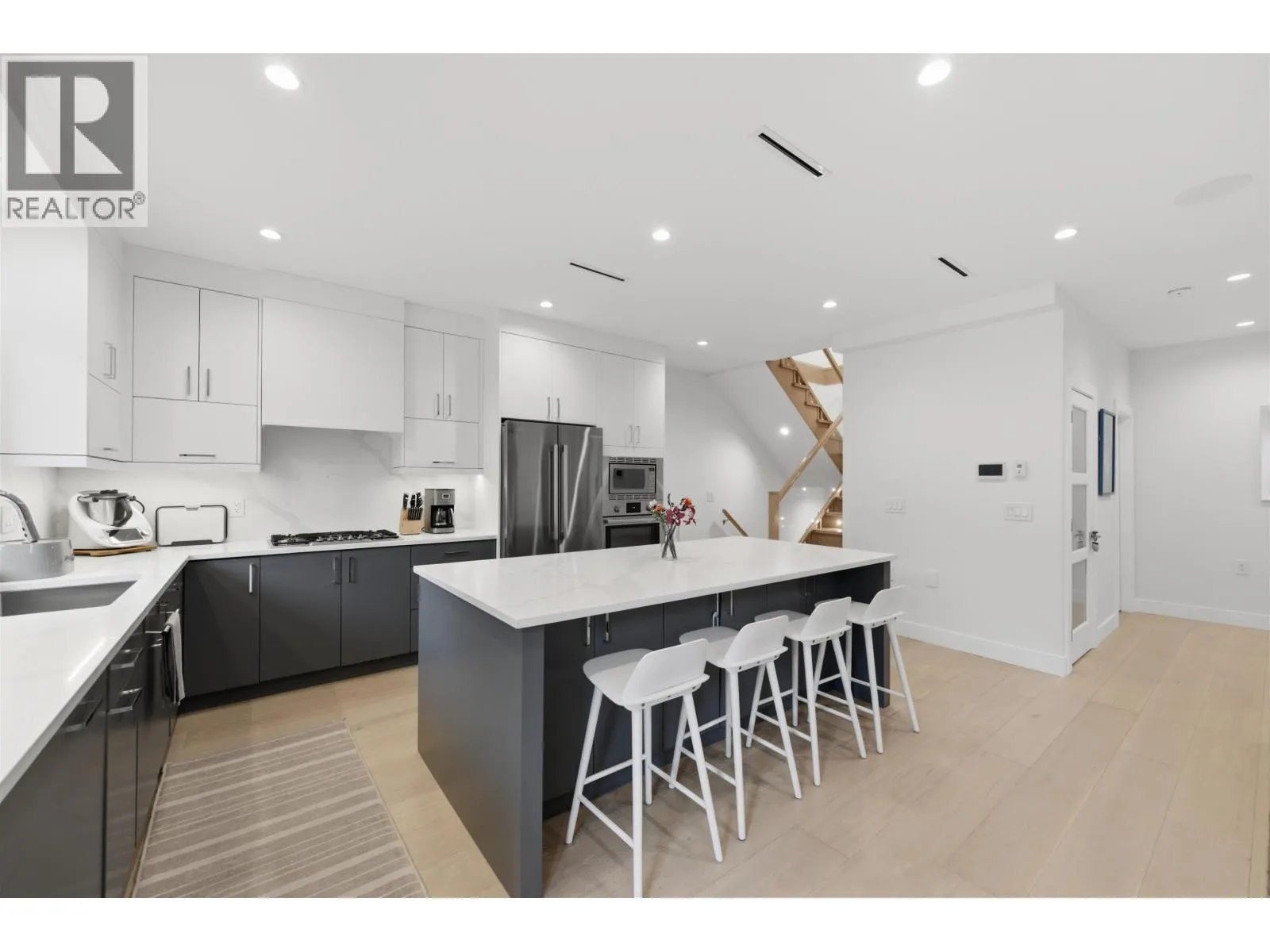 Spectacular City Home with panoramic rooftop views! Boasting an open concept, sleek design, radiant floor heating, AC, & HRV systems. The main floor impresses with a custom open kitchen, quartz countertops, dining area, & a chic powder room plus great outdoor terrace off main living perfect for BBQ & entertaining. Upstairs boasts 3 bedrooms, including primary suite with a marble