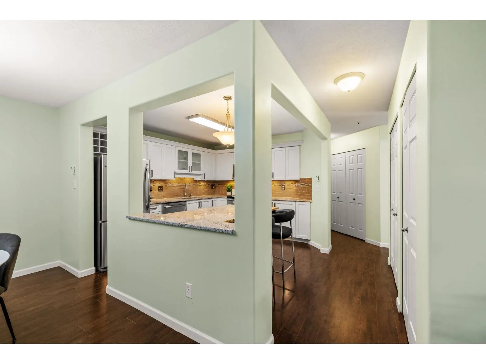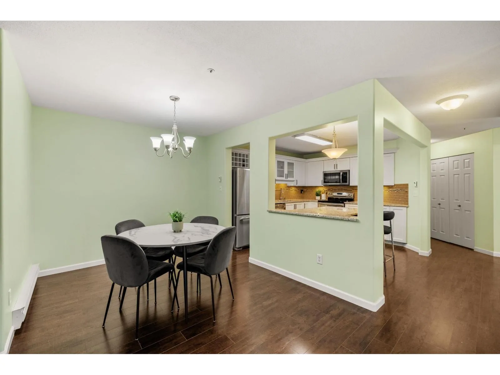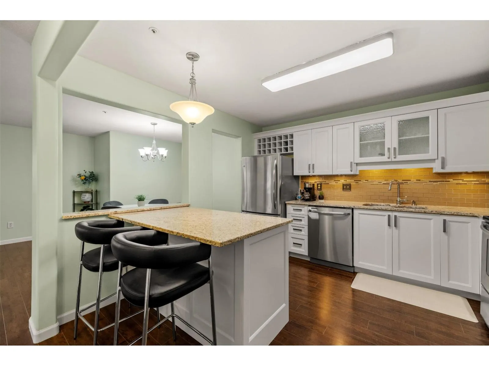 Welcome to Catalina Gardens! This private ground-floor corner unit offers 2 beds & 2 baths, with abundant windows bringing in natural light! Enjoy a dedicated laundry room w/new side-by-side washer & dryer. The UPDATED, OPEN kitchen features a large eat-up island, granite countertops, white shaker cabinets with ample storage, under-cabinet lighting and stainless steel appliances. The spacious dining area flows