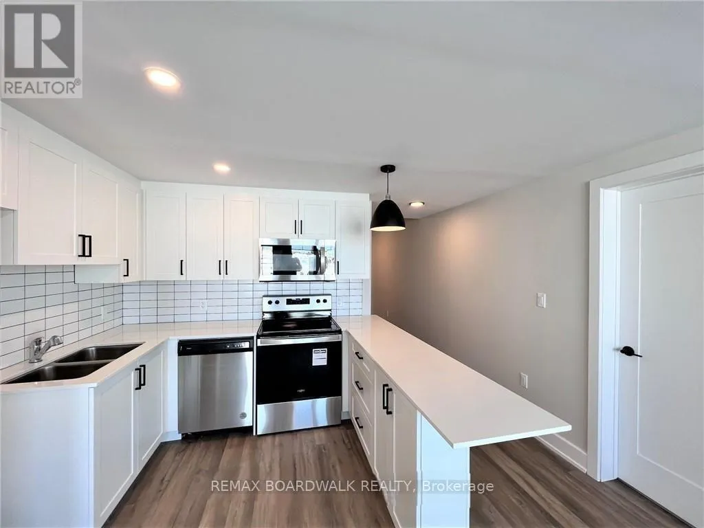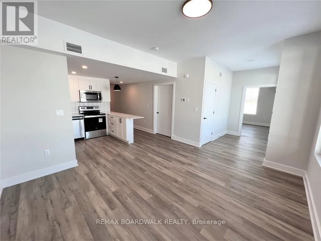Introducing Village Central in Kemptville, an exclusive living opportunity for seniors, retirees, and working individuals or couples. This three-story building comprises six well-appointed apartments on each floor. The corner apartment on the main level boasts a bright north-east exposure, offering a private entrance as well as access from the internal hallway. Residents can relish the oversized patio facing east, two