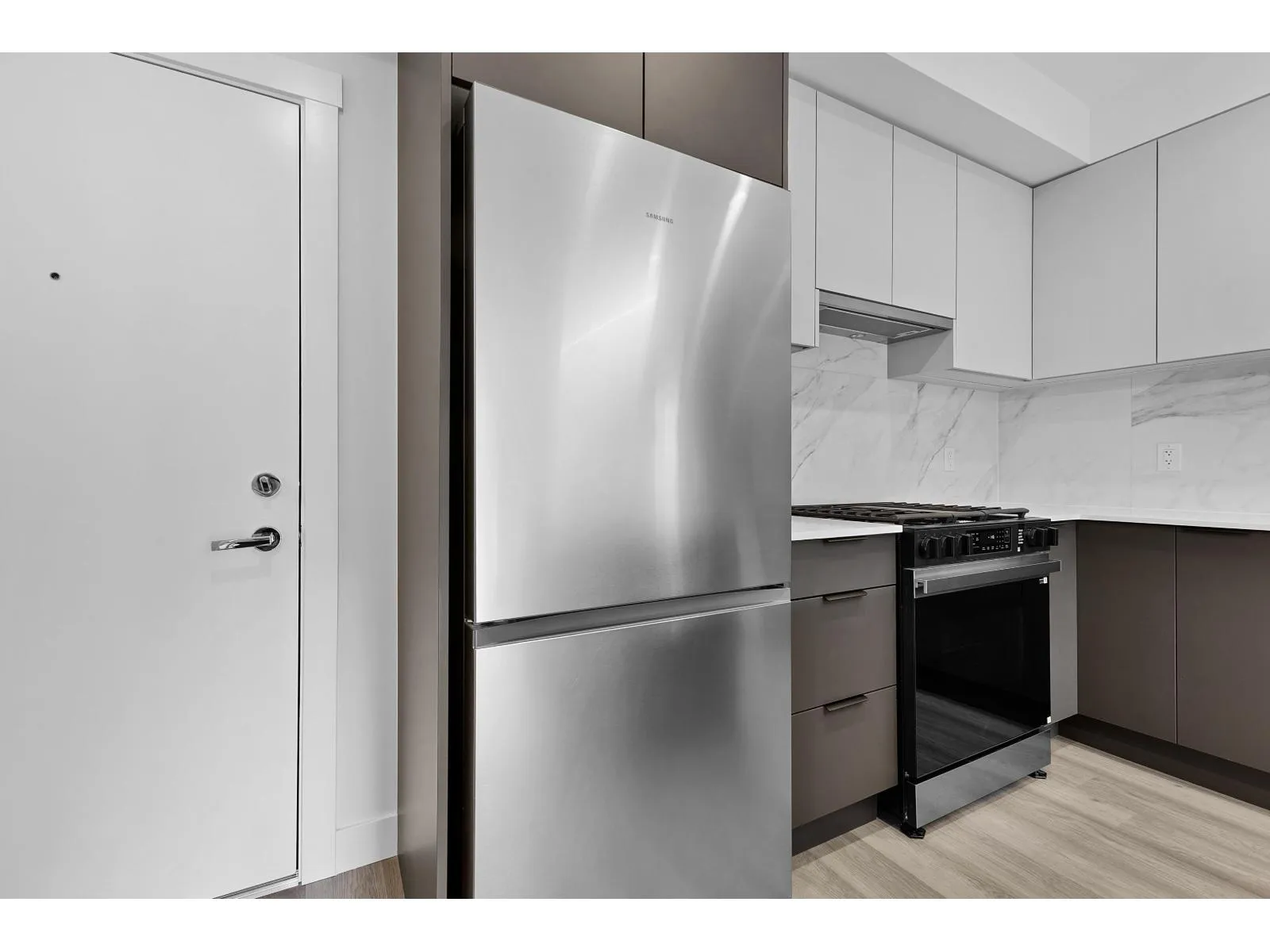SCOTT + 77 – Bright, modern home with quality finishes and excellent storage. The kitchen features quartz countertops, a large island, and a full appliance package including a dishwasher and microwave. The home also offers in-suite laundry and a private balcony with a natural gas BBQ hookup. Residents enjoy access to over 30,000 SF of amenities, including a rooftop terrace,