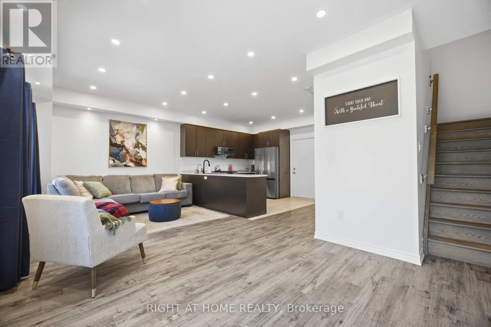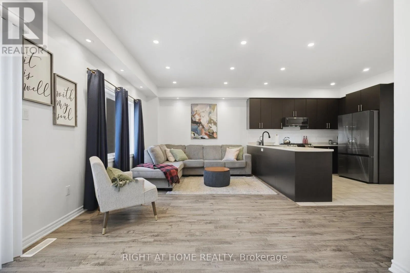 Welcome to 165 Berkshire, a beautiful townhome tucked away on a quiet, secluded street in the charming village of Arthur. The main floor offers a modern open-concept design with stylish finishes, a convenient powder room, and a bright eat-in kitchen featuring stainless steel appliances, including a natural gas stove. (All appliances June 2022). Vinyl flooring runs throughout the home, complemented