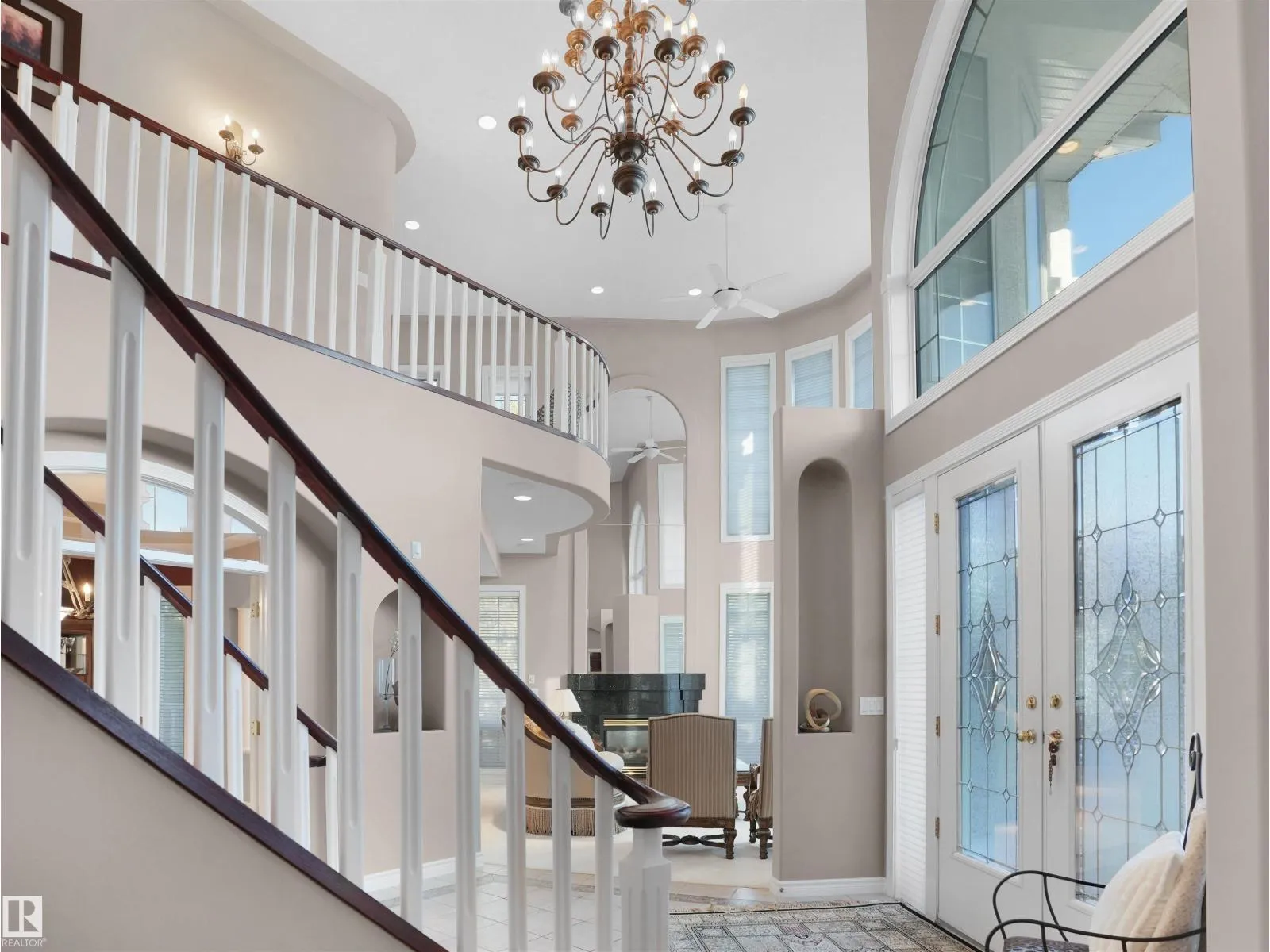 This elegant estate home is set within a prestigious country club, backing onto the golf course with breathtaking river valley views. Situated on a 1/3-acre lot, this custom walk-out offers approximately 6,500 sq. ft. of refined living space. A grand double staircase welcomes you into a home featuring 10’ ceilings, triple-pane windows, and a second private staircase. Enjoy formal living