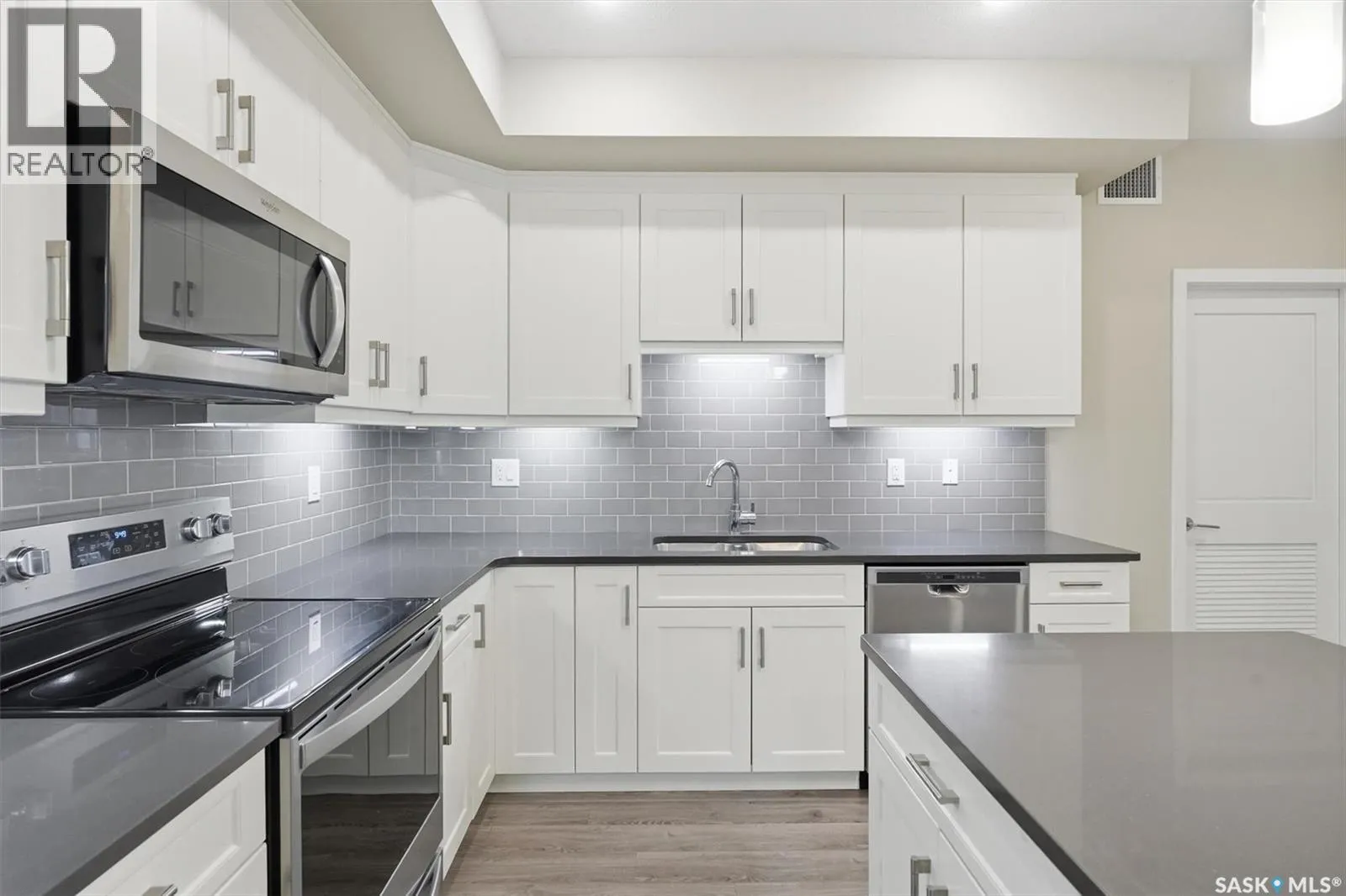 Experience easy living in this well-appointed 2-bedroom condo in The Bentley, a sought-after River Heights complex. The bright, open-concept layout centres around a stylish kitchen featuring quartz countertops, tile backsplash, soft-close cabinetry, under-cabinet lighting, and 4 stainless steel appliances. A pantry cabinet with rollout drawers adds functional storage, while the eat-up island is perfect for casual meals. There’s ample space