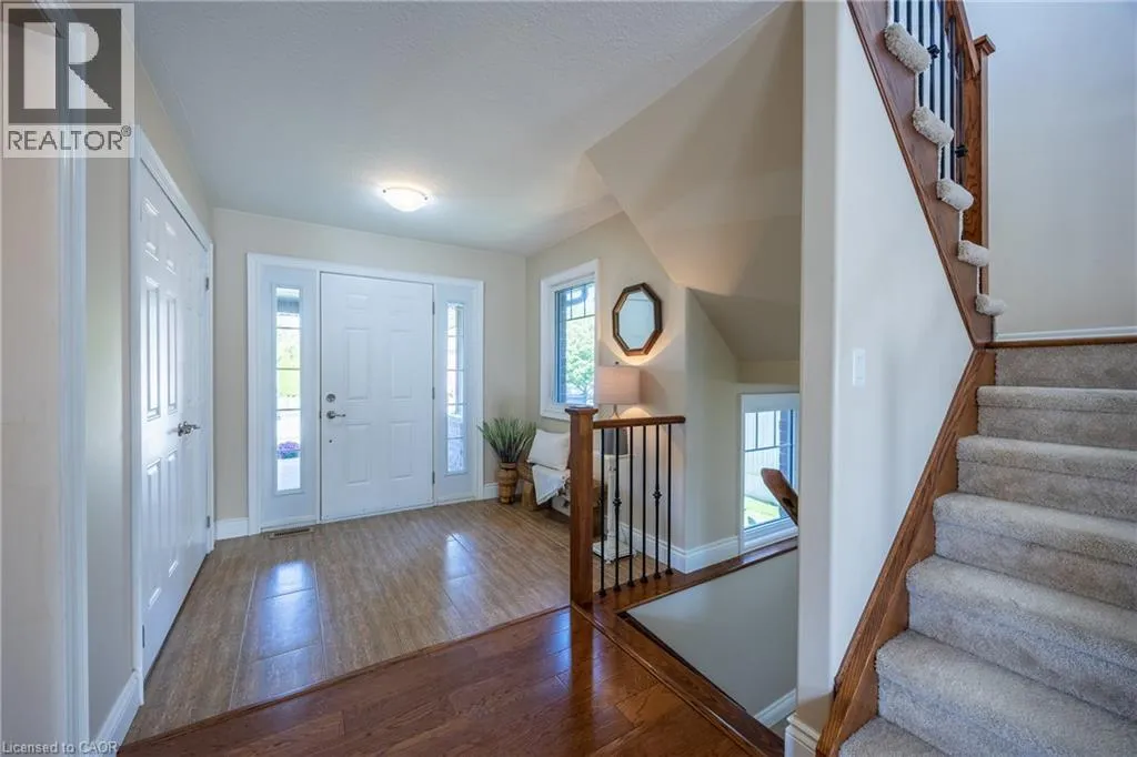 Enjoy lakeside living in Ducks Landing! Beautiful 2 story brick home with 3+1 bedrooms, 4 bathrooms and double car garage. Bright foyer and open concept living / dining / kitchen provide a wonderful space for entertaining family and friends. Large deck off the kitchen / dining area with gas barbecue hookup. Nicely finished kitchen with cream cupboards, large island /